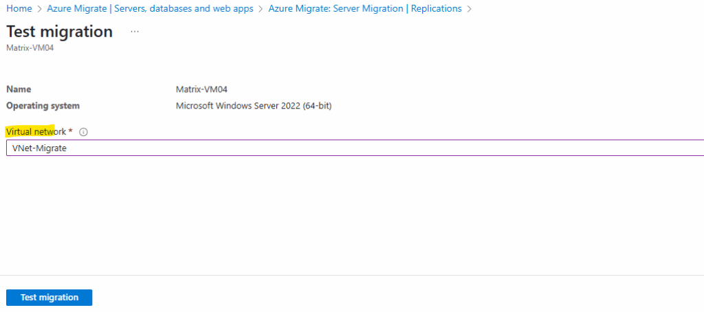 - Test migration simulates the migration by creating an Azure VM using replicated data (usually migrating to a non-production VNet in your Azure subscription).