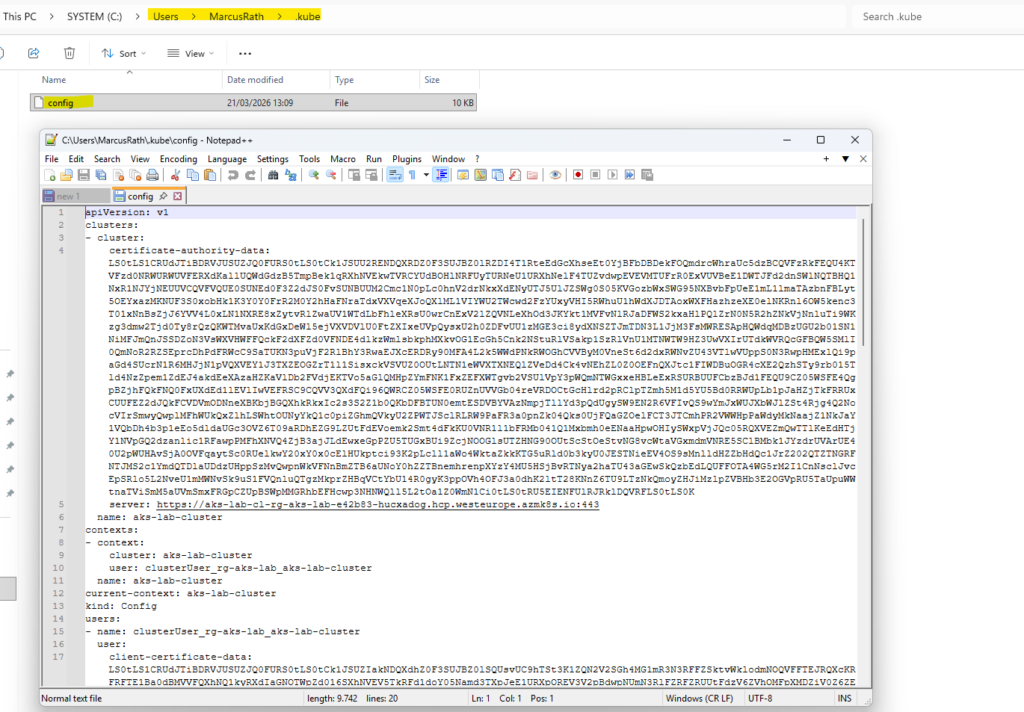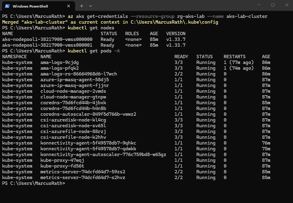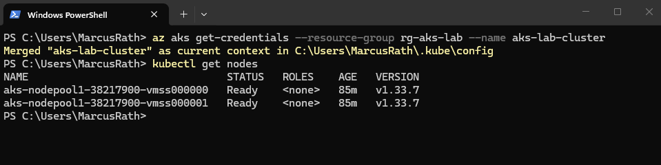 PS> az aks get-credentials --resource-group rg-aks-lab --name aks-lab-cluster