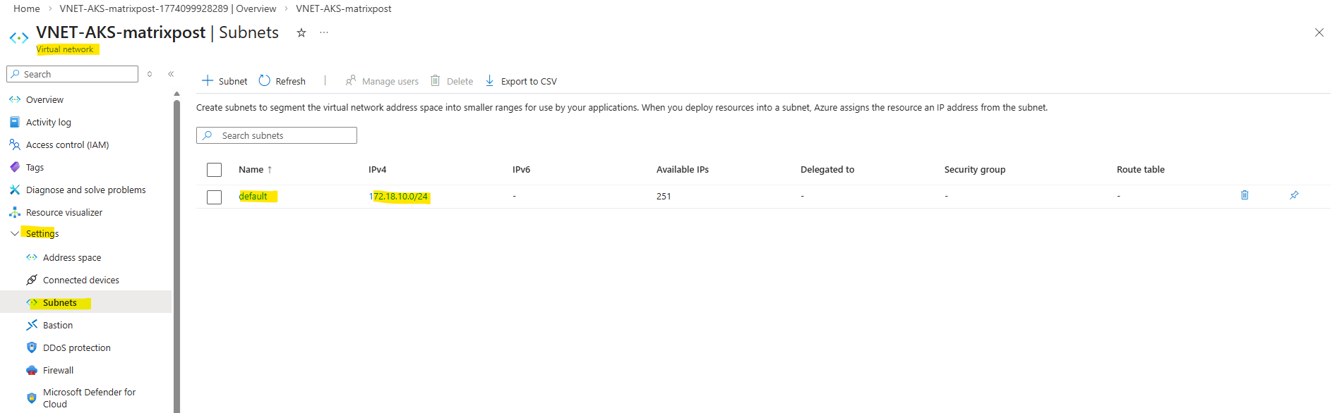 PS> $AKS_SUBNET_ID = az network vnet subnet show --resource-group rg-aks-lab-02 --vnet-name VNet-AKS-matrixpost --name default --query id -o tsv