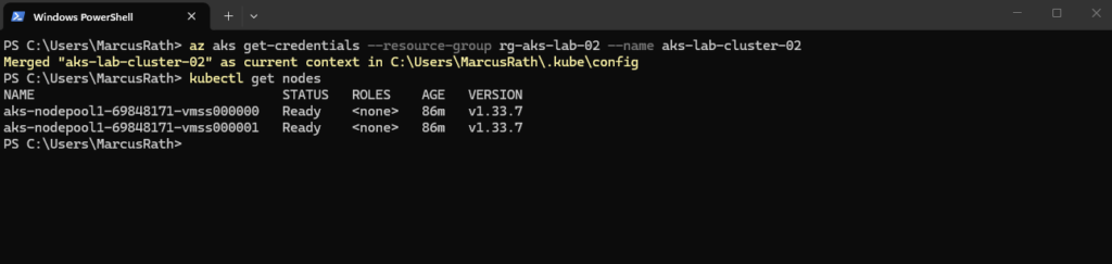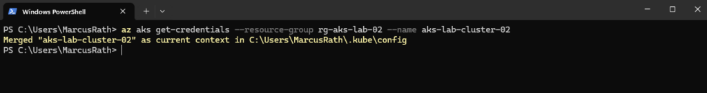 PS> az aks get-credentials --resource-group rg-aks-lab-02 --name aks-lab-cluster-02