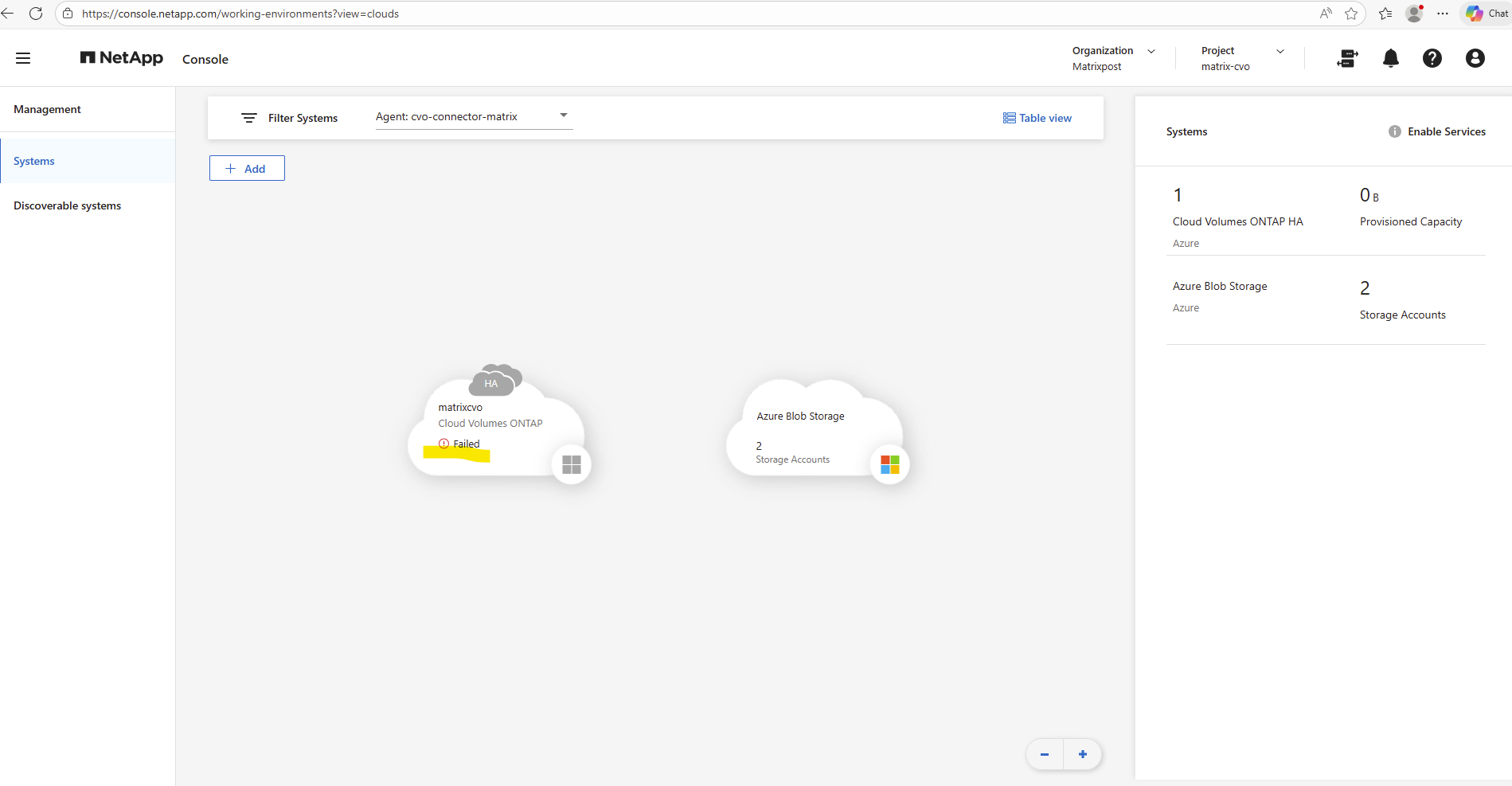 With the Cloud Volumes ONTAP HA system now successfully deployed in Azure, the core infrastructure and ONTAP environment are in place.