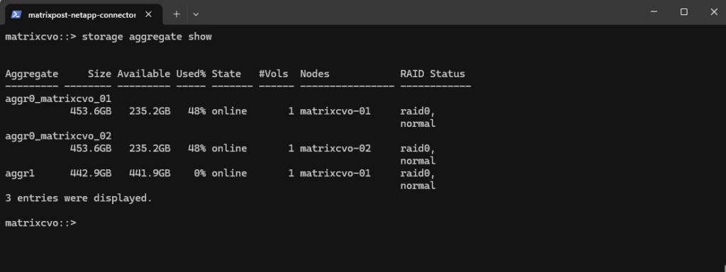 matrixcvo::> storage aggregate show
