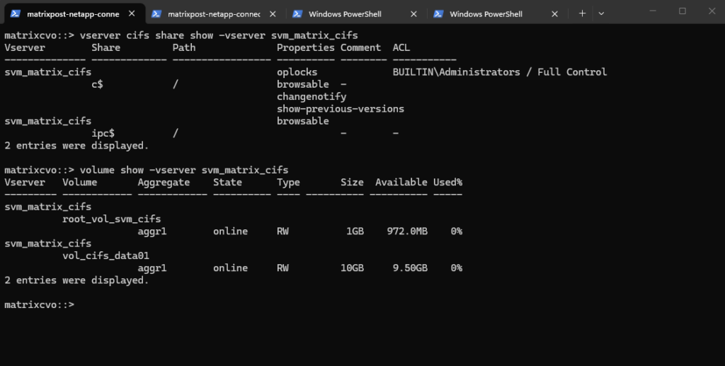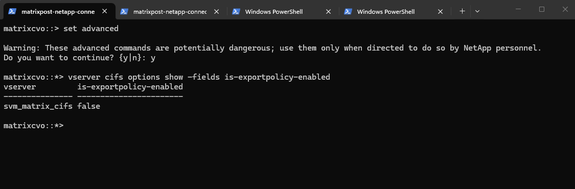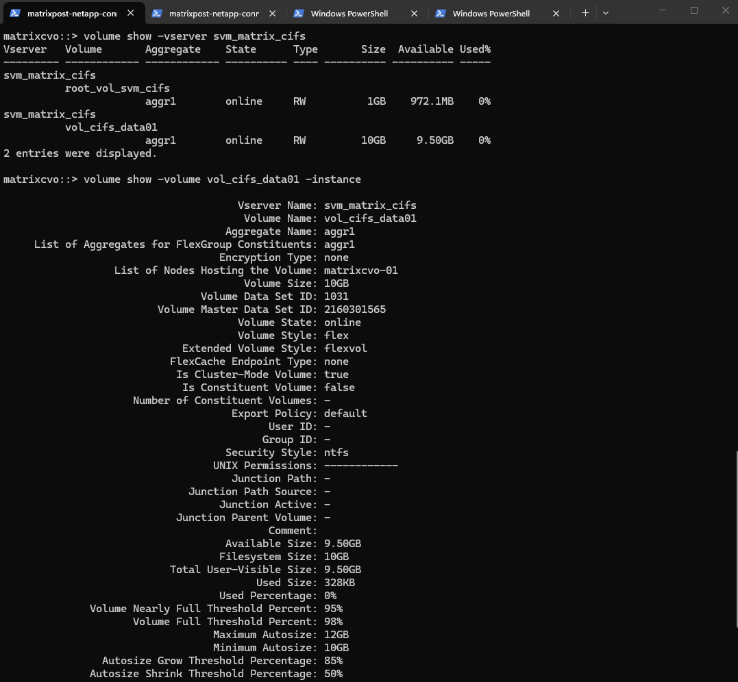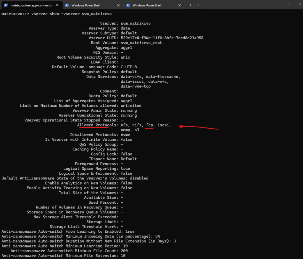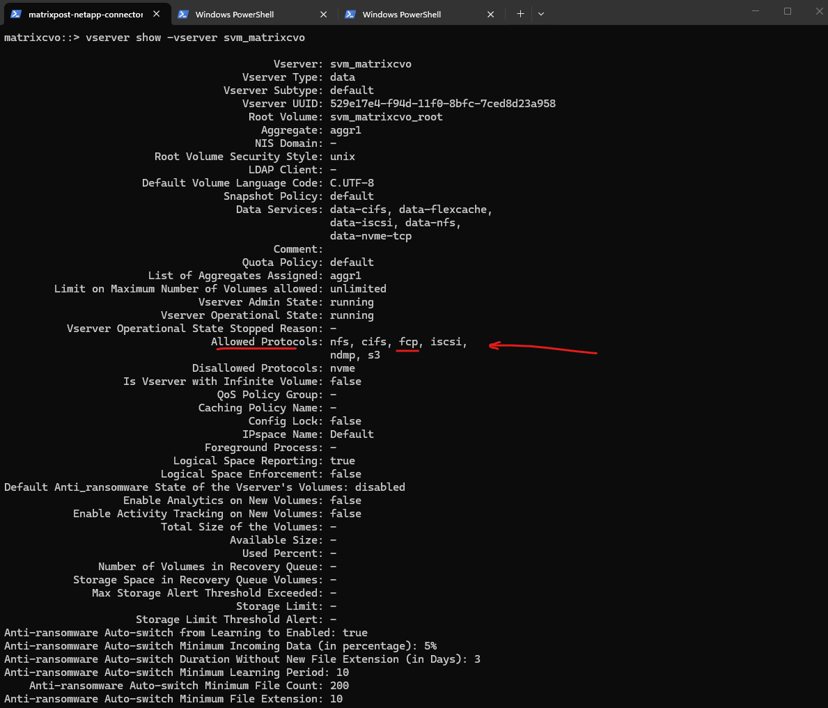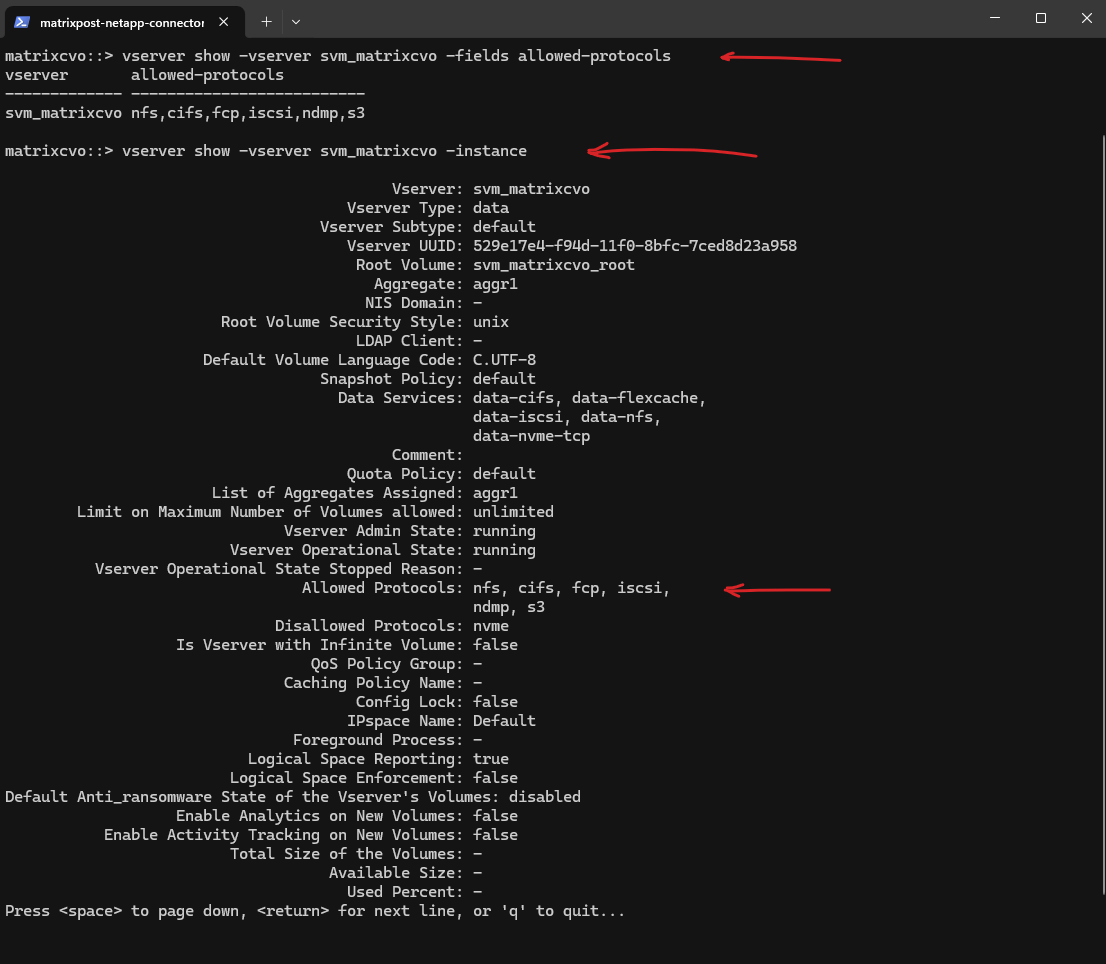 matrixcvo::> vserver show -vserver svm_matrixcvo -fields allowed-protocols matrixcvo::> vserver show -vserver svm_matrixcvo -instance