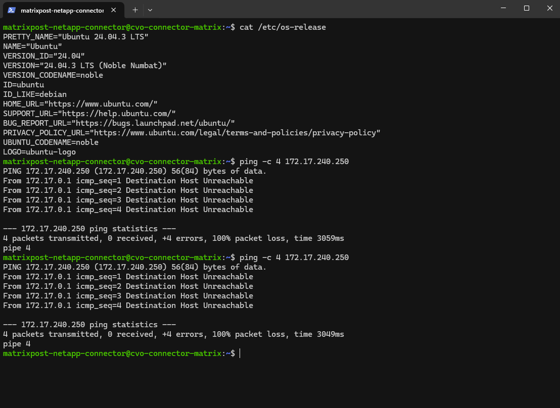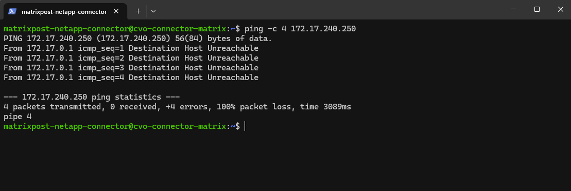 Nevertheless I can’t reach the pfSense appliance on its internal network interface with the IP 172.17.240.250 from the connector VM.