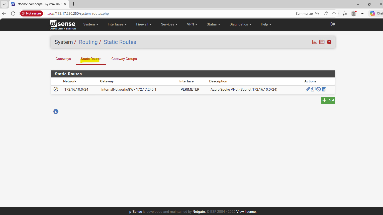 So I will add this route on the Azure pfSense appliance.