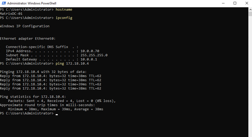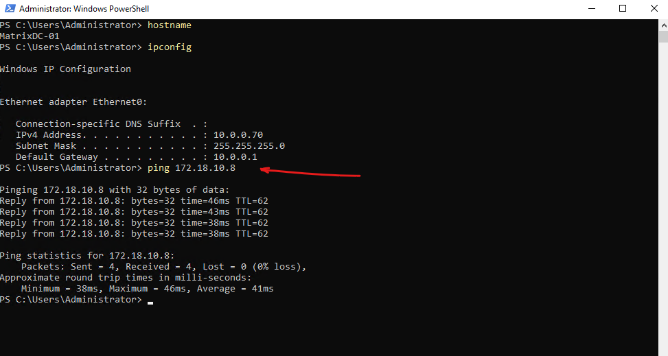 And vice versa, pinging the connector VM from my on-prem virtual machine (here my domain controller).