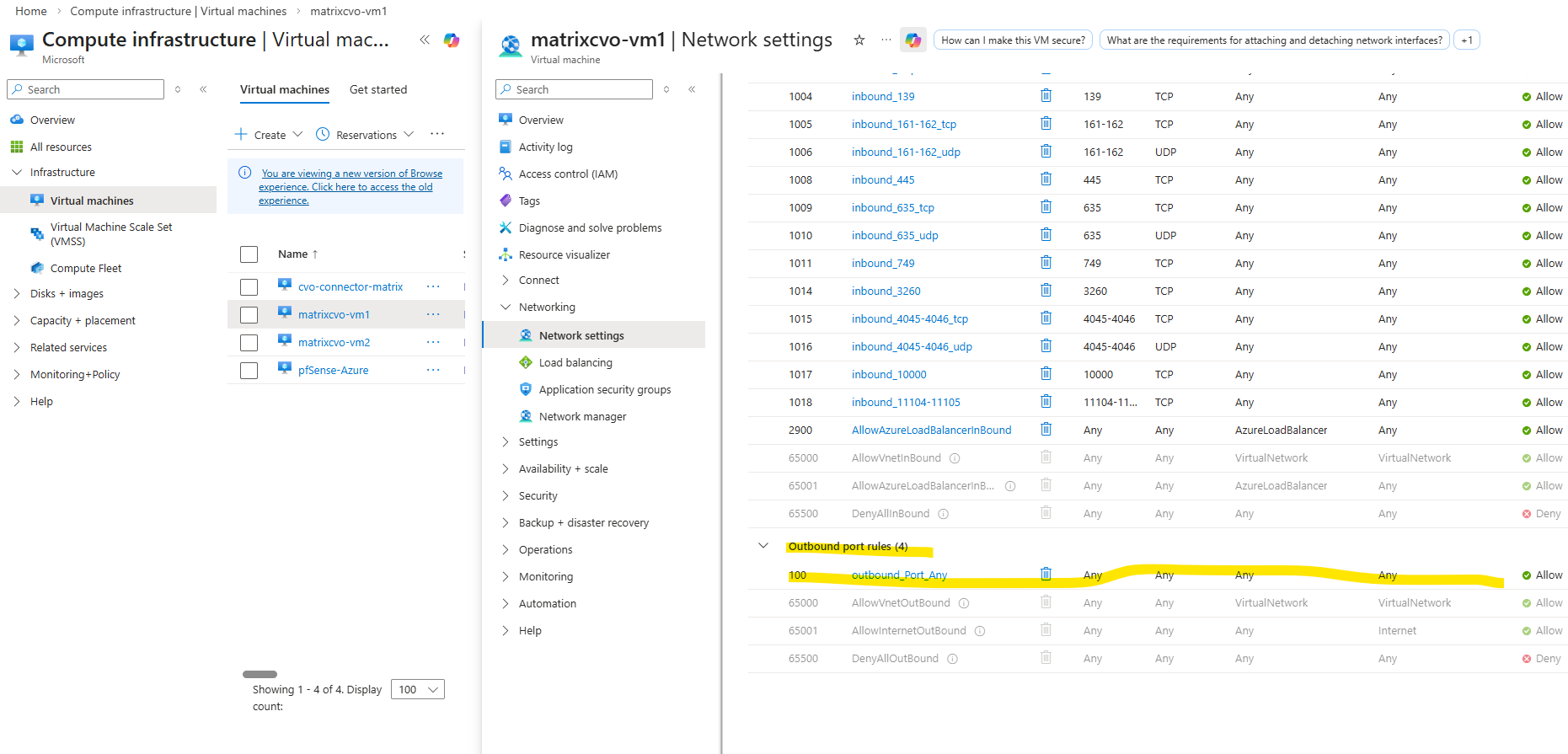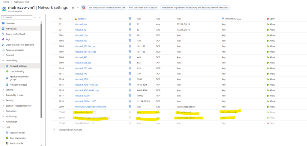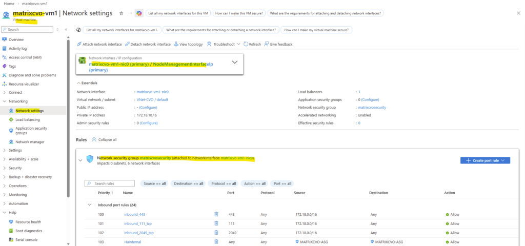 On the CVO subnet threre is no NSG assigned to as we previously checked and therefore no traffic is filtered on the virtual network and subnet itself.