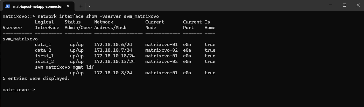 matrixcvo::> network interface show