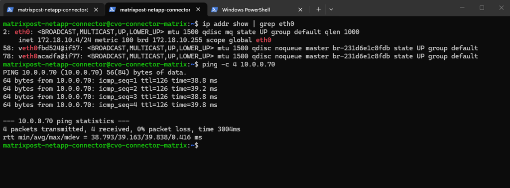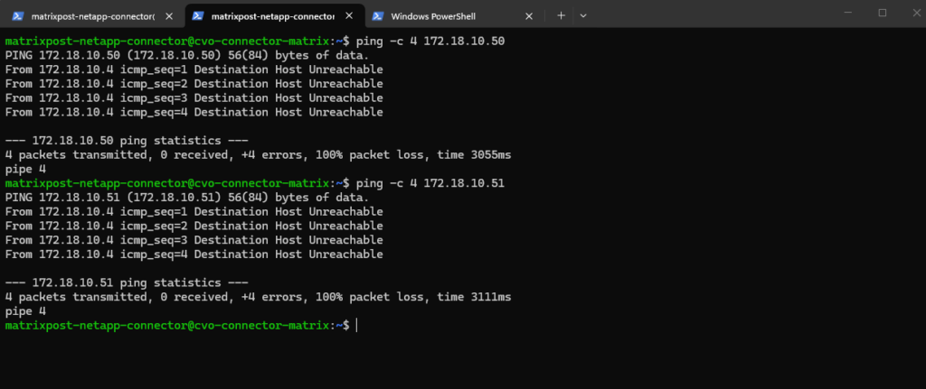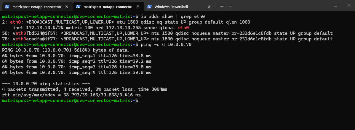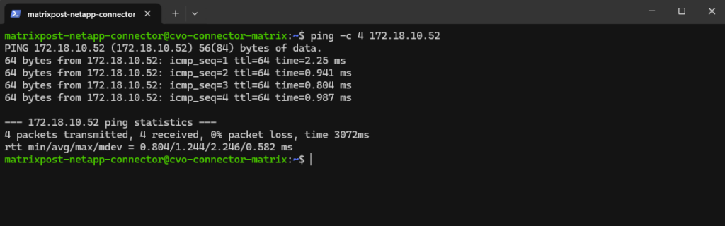 Below I will check if can ping the SVM on which I want to enable cifs/smb on and therefore need to join it to my on-prem Active Directory. Looks good.