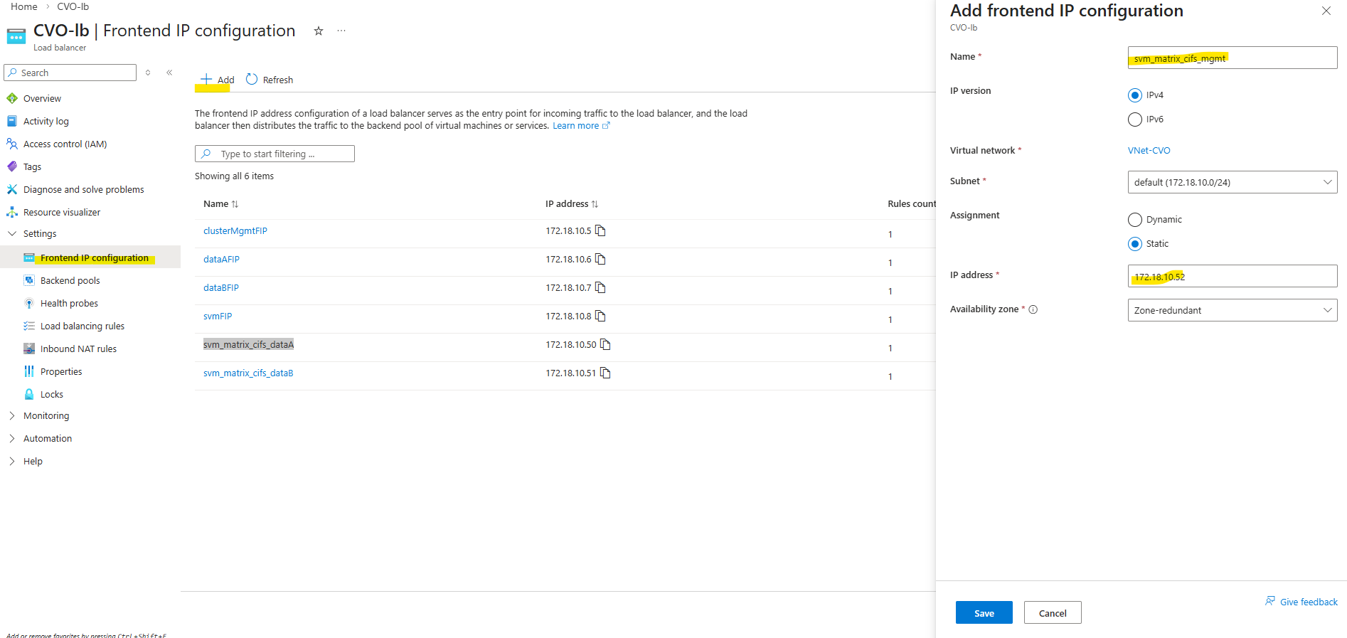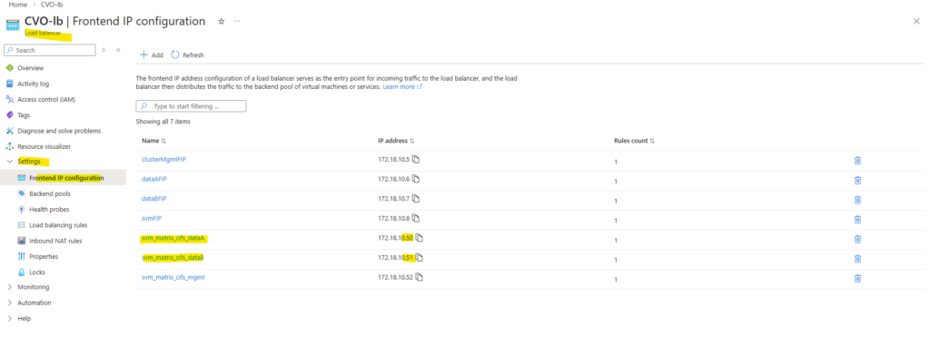 svm_matrixcvo) a SVM management LIF/IP and dedicated data LIFs were configured.Source: https://docs.netapp.com/us-en/storage-management-cloud-volumes-ontap/reference-networking-azure.html
