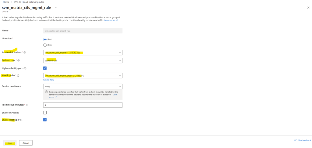 Therefore, ONTAP LIFs are not reachable until they are mapped through an Azure Internal Load Balancer. Azure itself has no awareness of it until the corresponding ILB configuration is created.