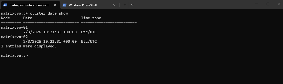 matrixcvo::> job schedule cron create -name daily_1720 -minute 20 -hour 17 matrixcvo::> job schedule show -name daily*