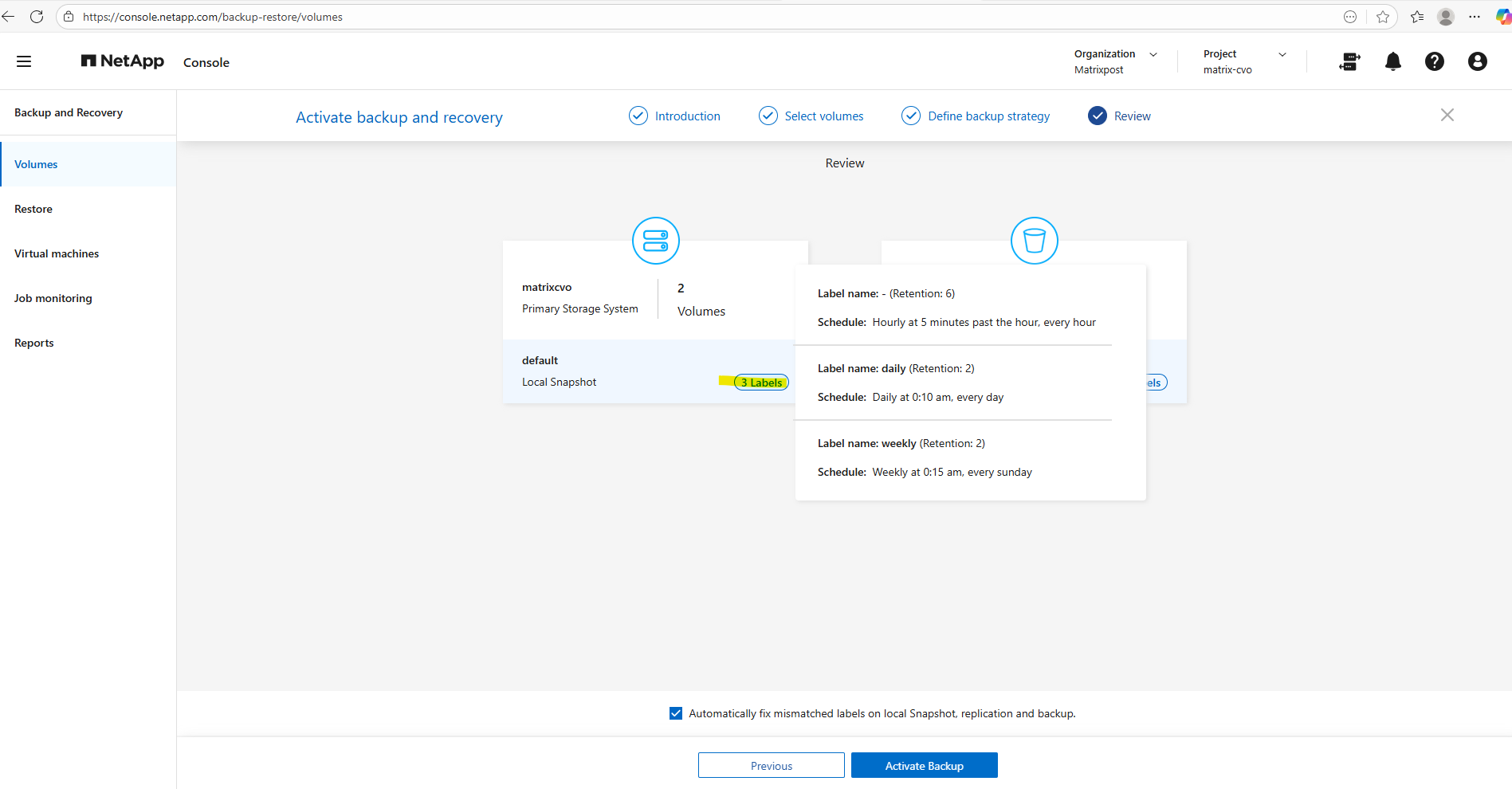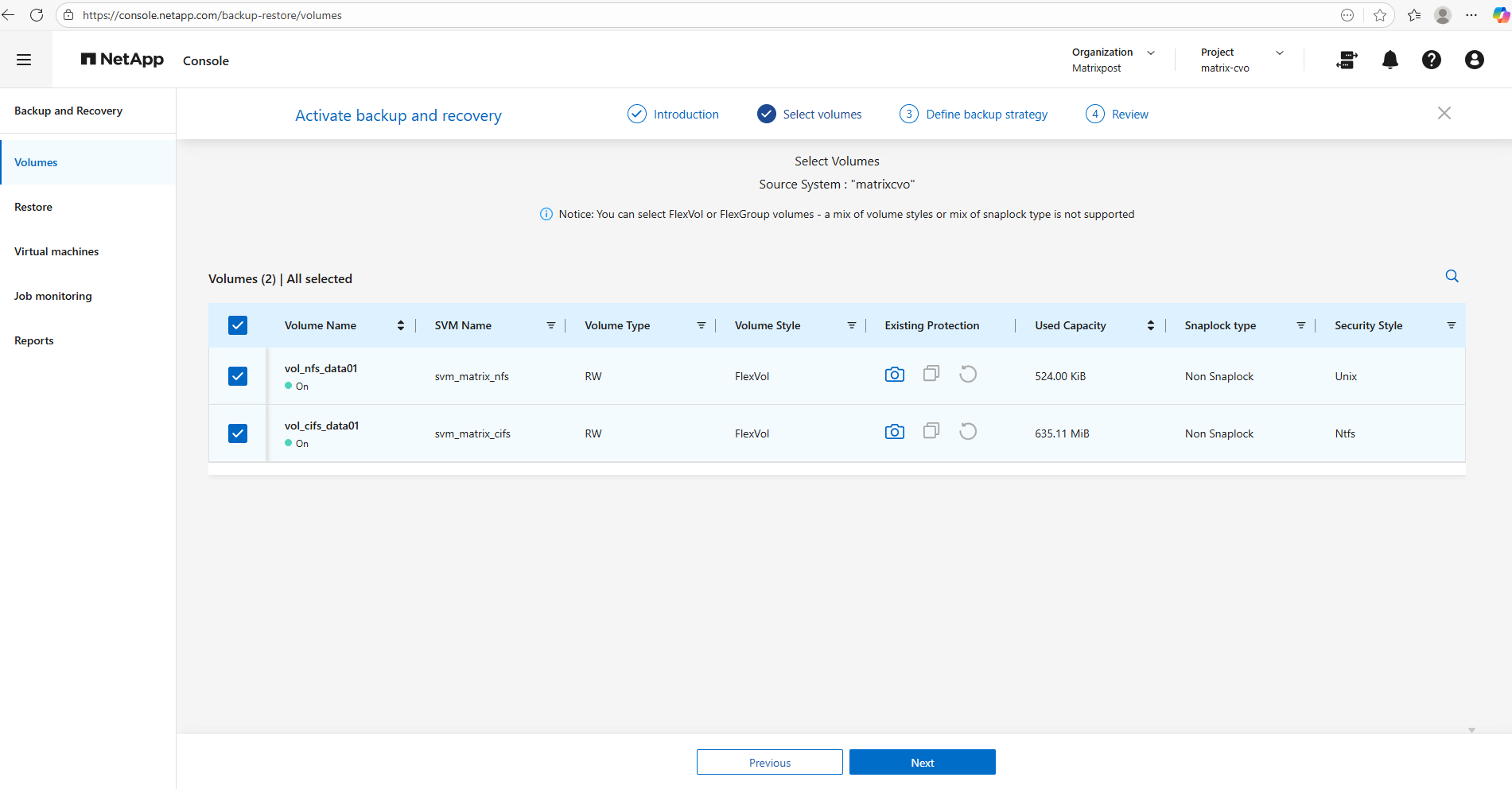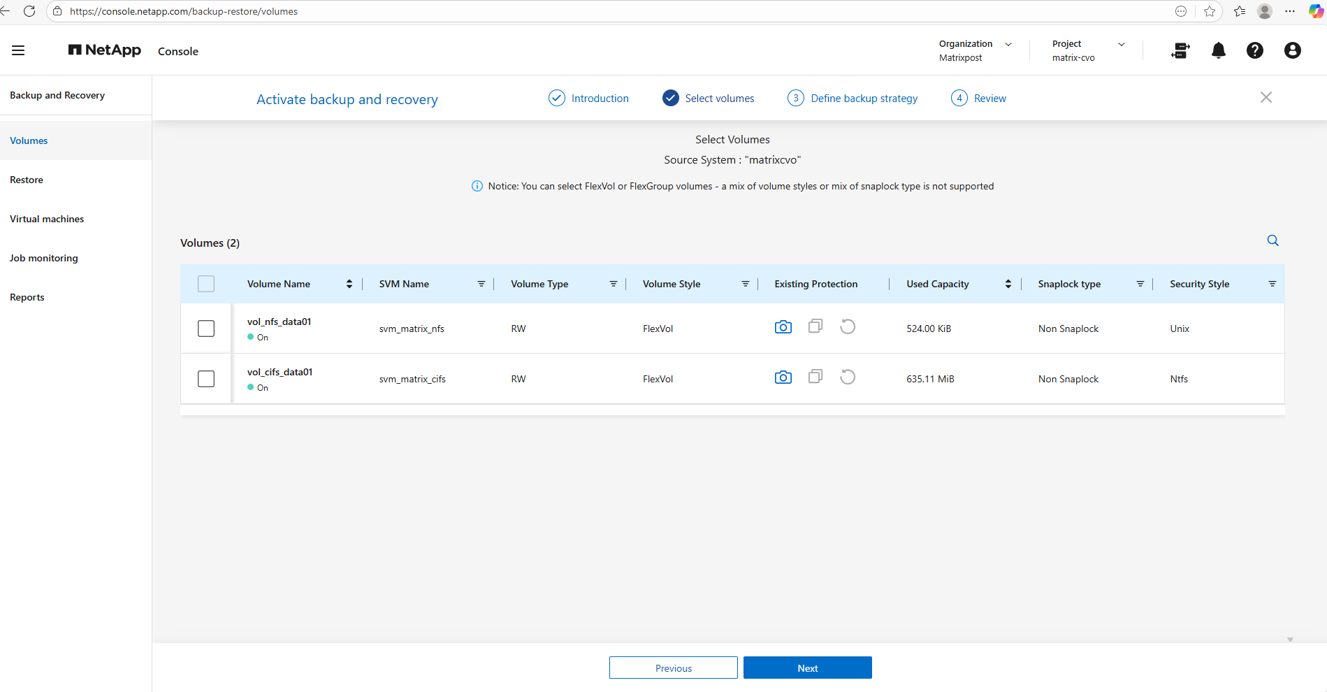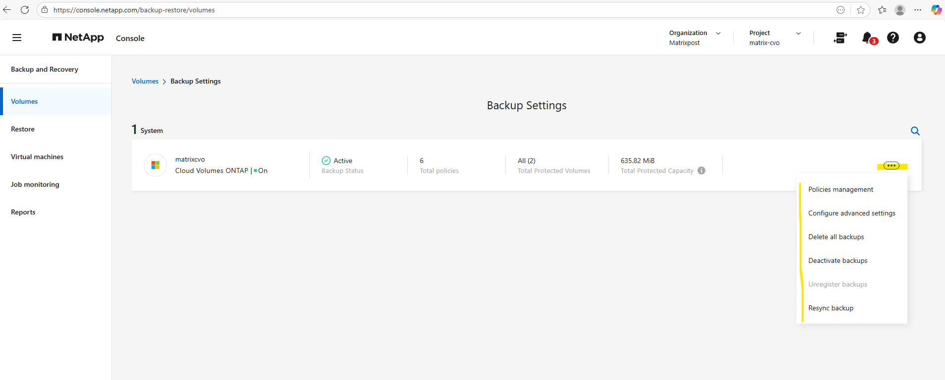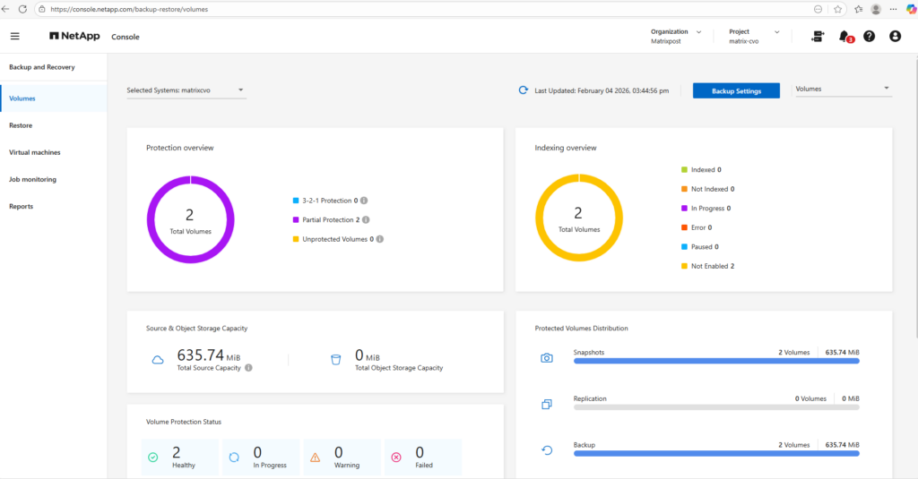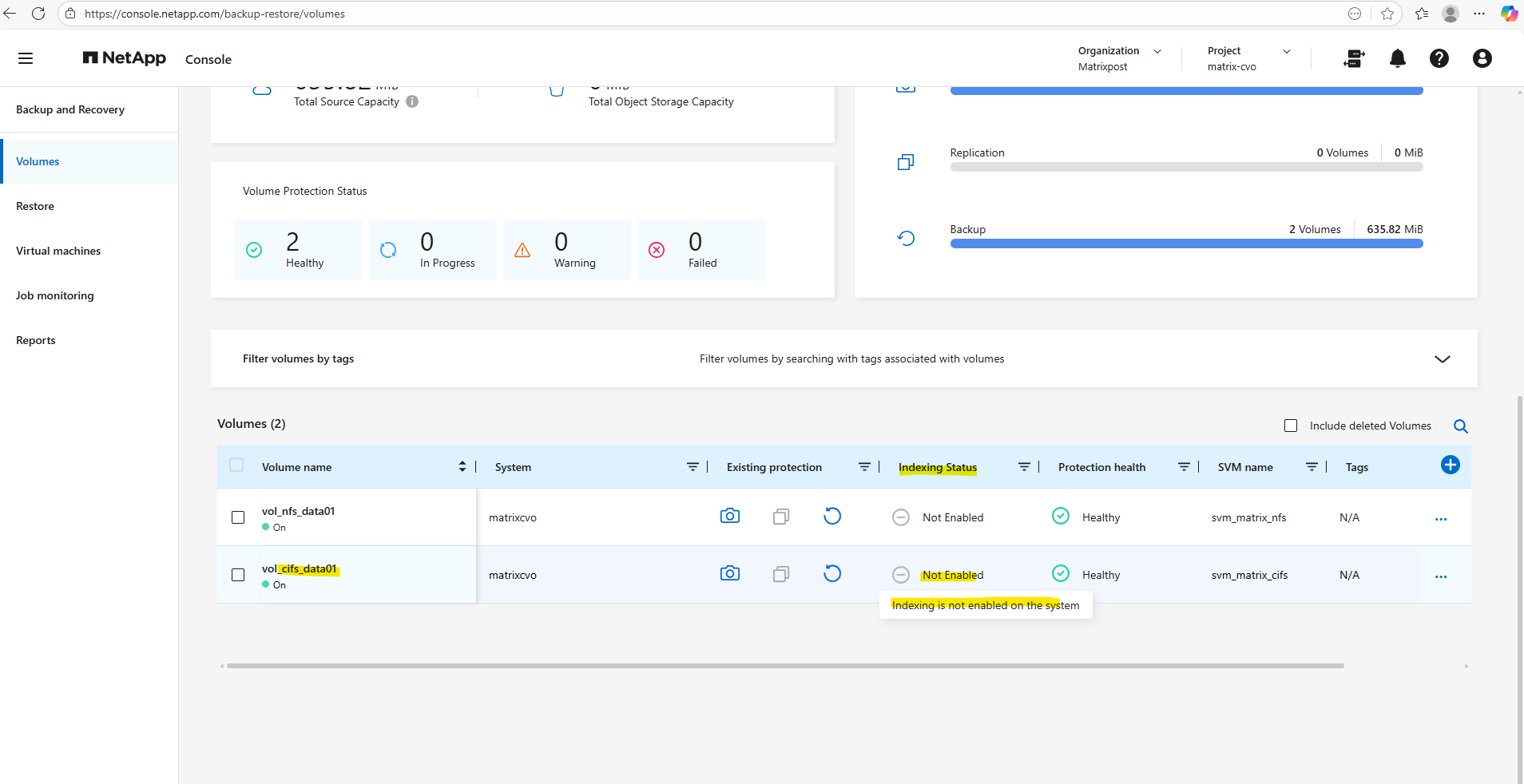 Looks good, after a few minutes we will get redirected to the Backup and Recovery -> Volumes page as shown below.