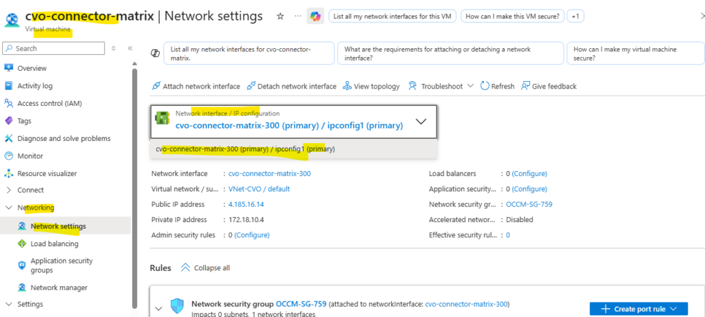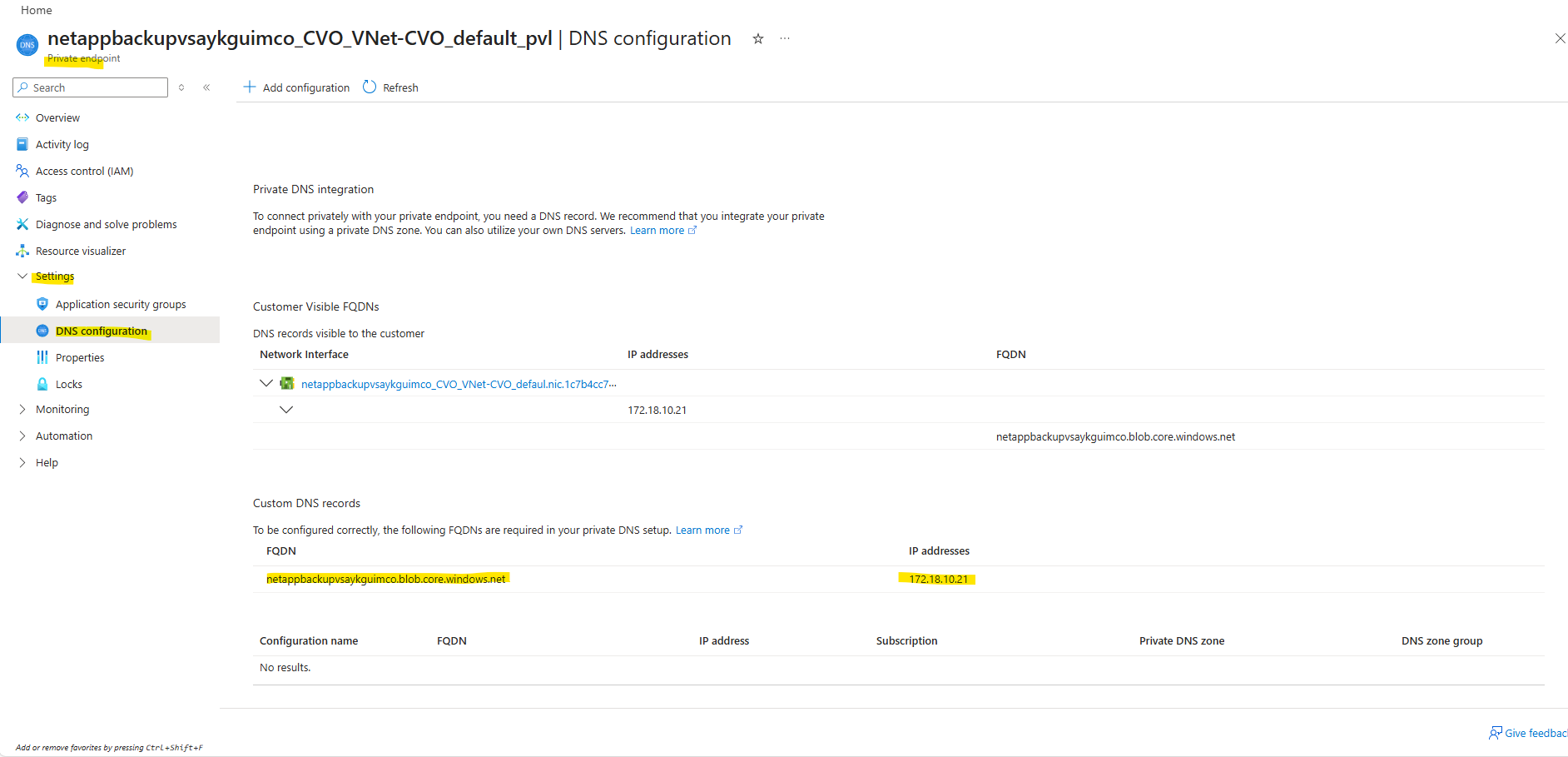 To set the DNS record above on the Admin SVM we can first obtain the required information from the created private endpoint on the storage account.