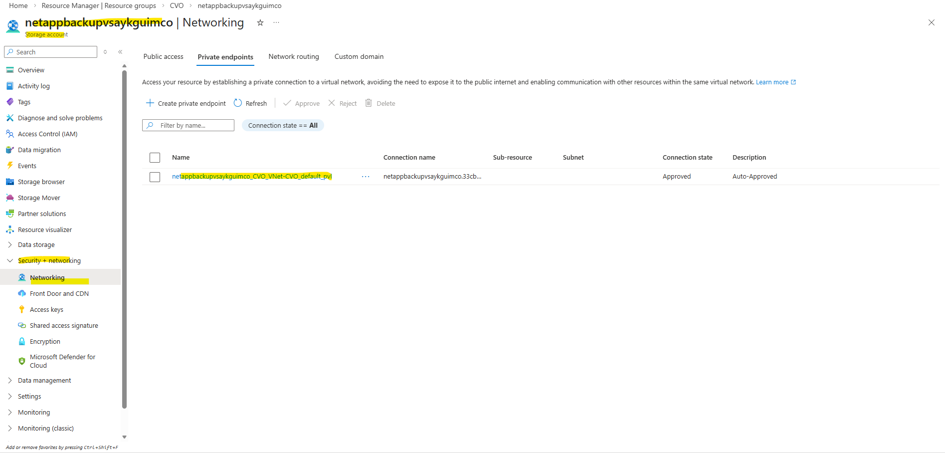 By enabling the Private Endpoint Configuration (enabled by default), the backup traffic between Cloud Volumes ONTAP and Azure Blob storage is routed entirely through the Microsoft Azure backbone network using a private IP address, rather than traversing the public internet.