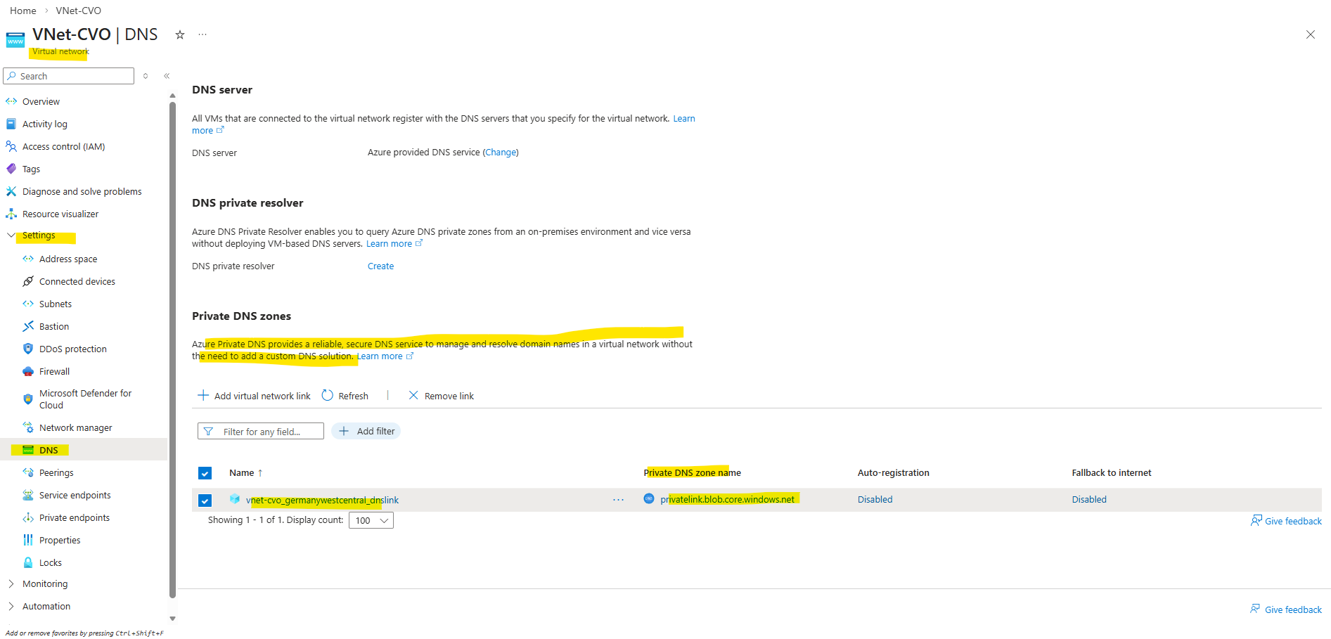 During the configuration of Backup and Recovery, connectivity to the storage account via its Private Endpoint initially failed due to missing DNS resolution.