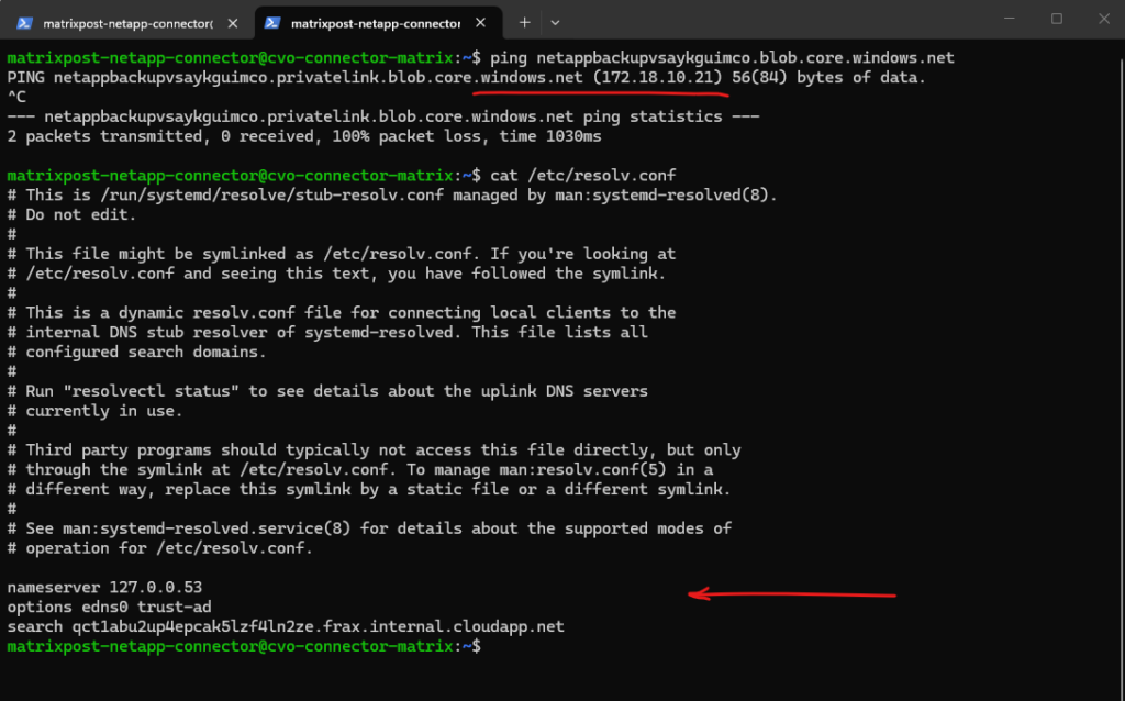 As workaround I implemented a Local Host Table Entry on the Admin SVM. This surgically resolved the hostname for the Azure Private Endpoint without impacting other cluster management traffic, successfully clearing the ‘Hostname cannot be resolved’ error that was blocking the backup activation.”