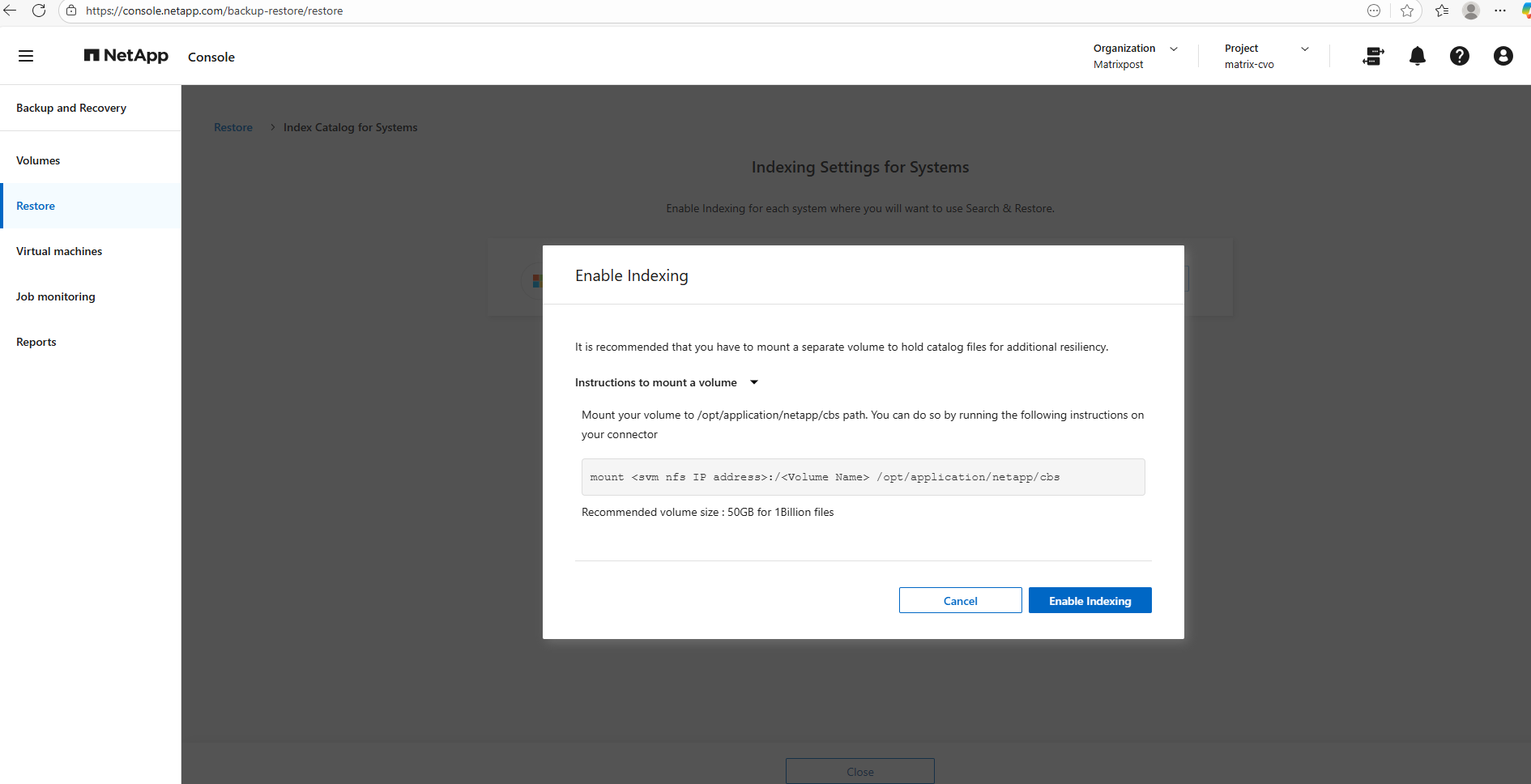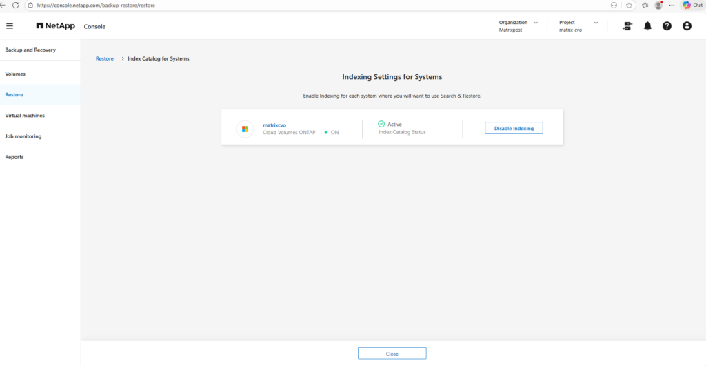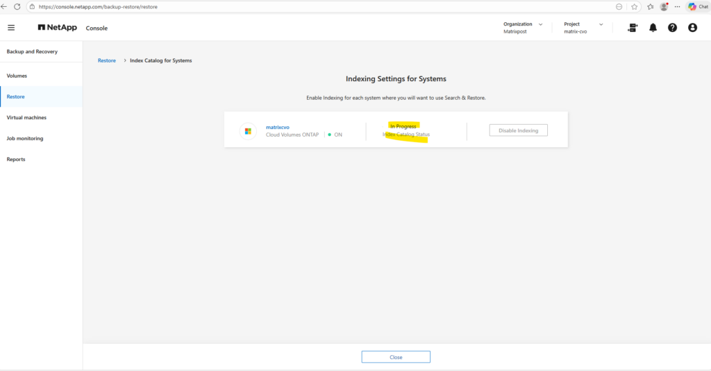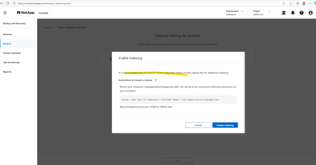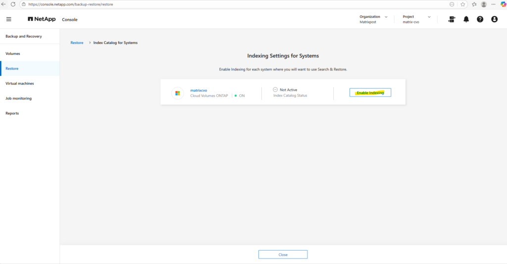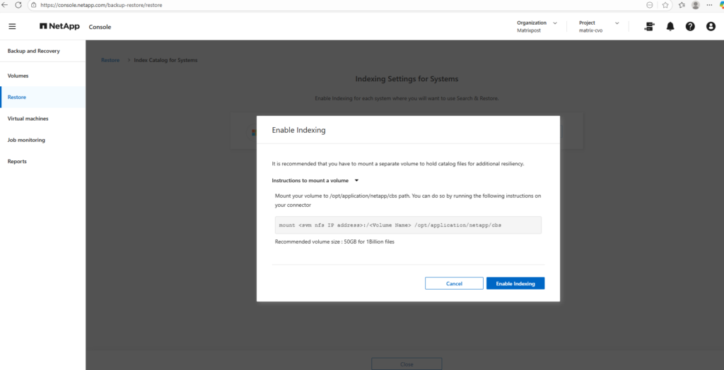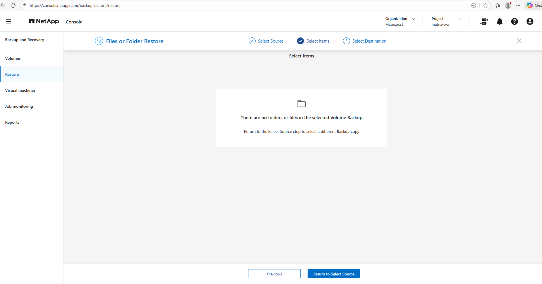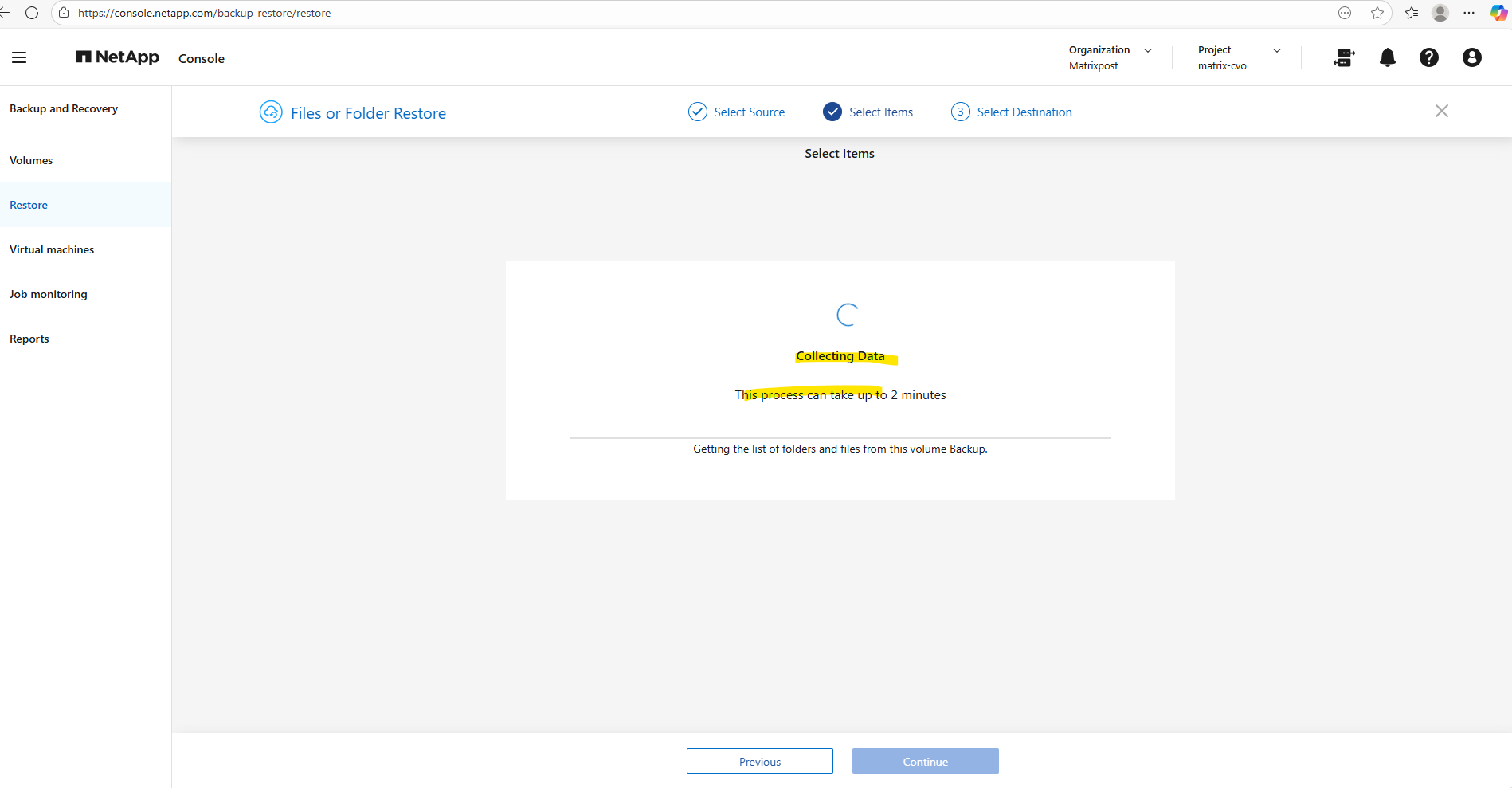We can here either restore files or folders or a complete volume, how to restore files and folder by using the NetApp console and backups, I was already showing further above by restoring from backup, therefore I will show how to restore a volume below.