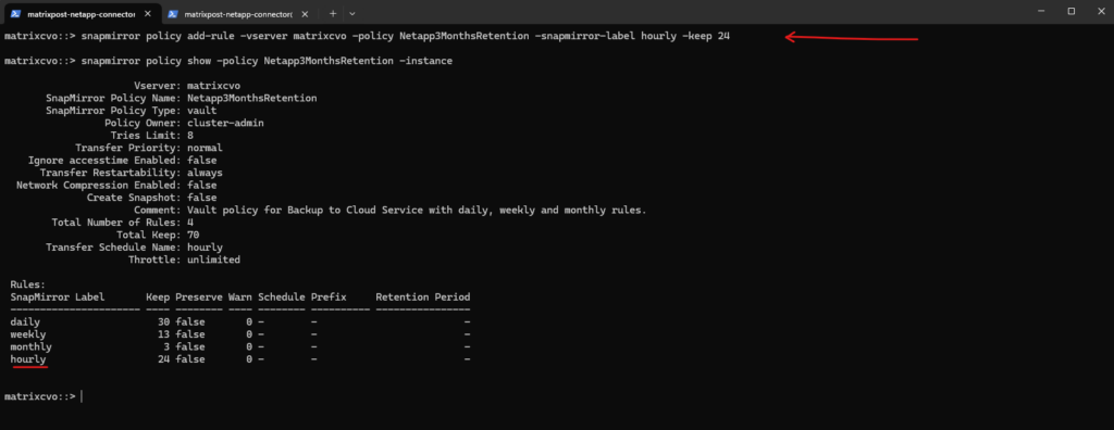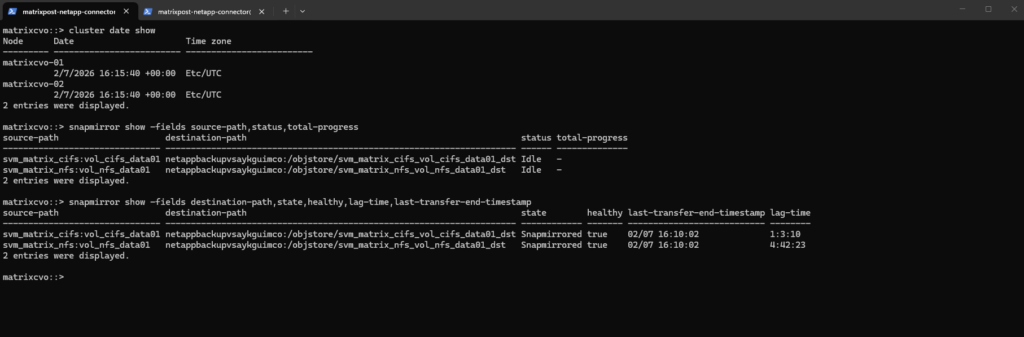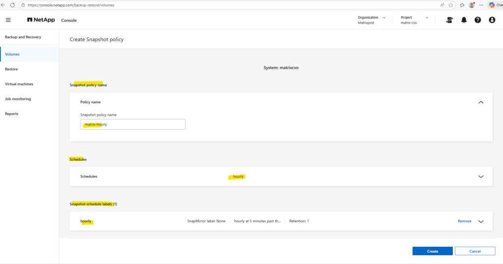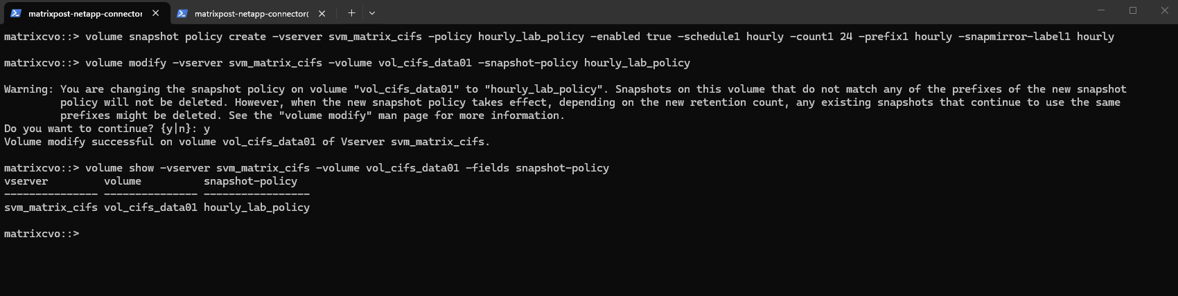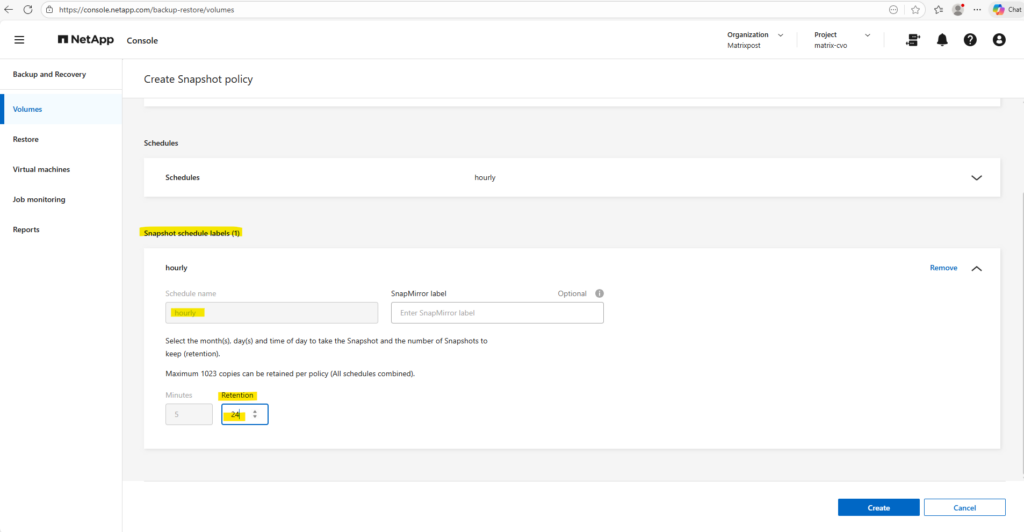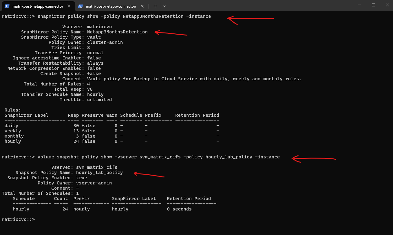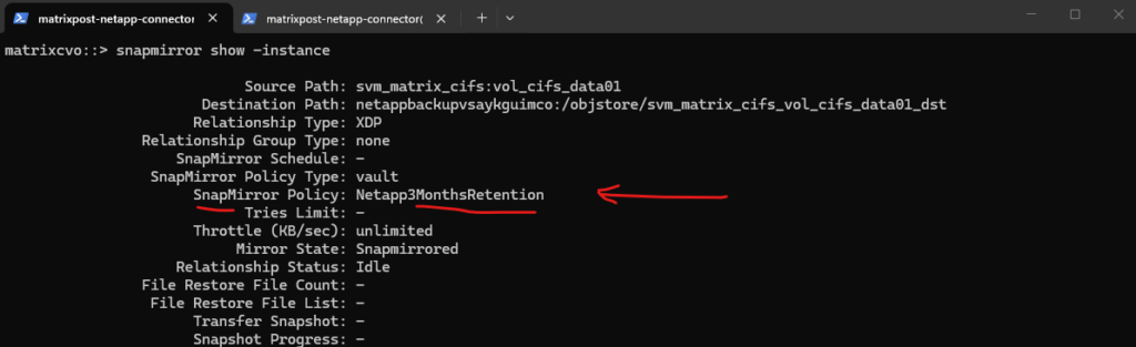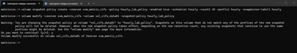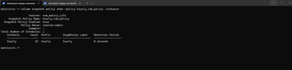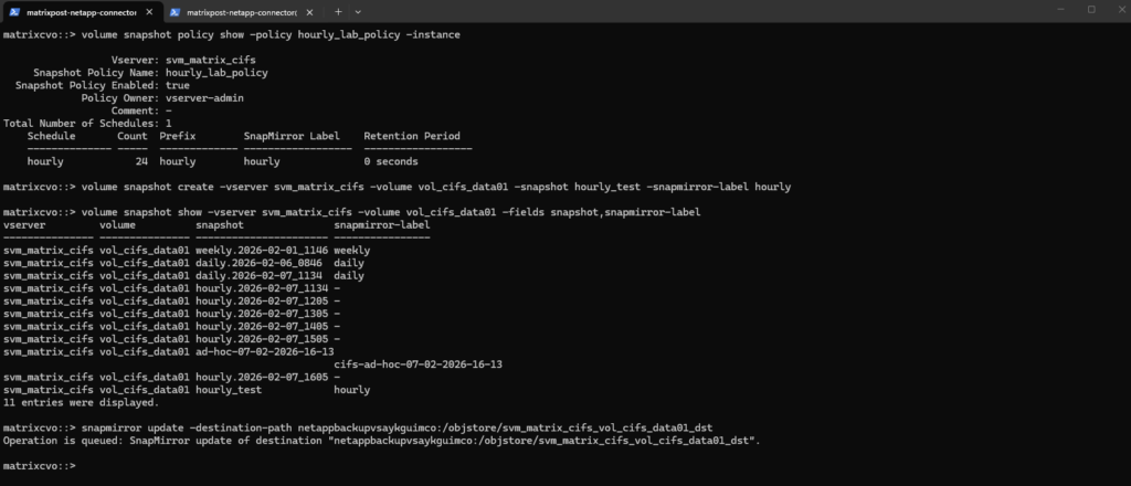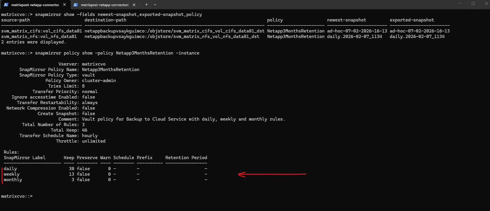 In this section, we will configure snapshot policies, align them with SnapMirror backup rules, and validate that retention behaves as expected across both local storage and object storage.