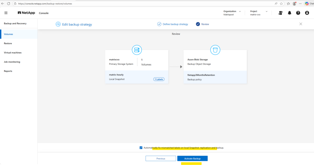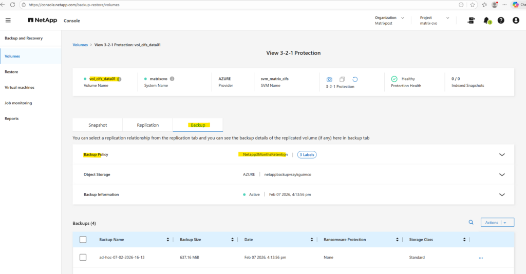 Deploying NetApp Cloud Volumes ONTAP (CVO) in Azure using NetApp Console (formerly BlueXP) – Part 5 – Backup and Recovery