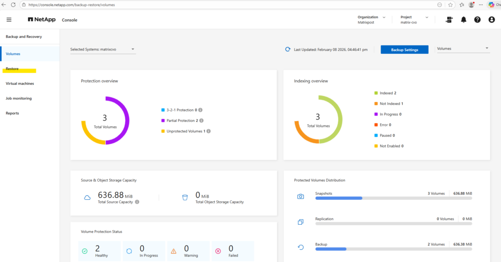 Restoring to a new volume is ideal for validation, testing, or side-by-side comparisons, while restoring to the original location supports rapid operational recovery. This flexibility allows recovery workflows to be aligned with the specific requirements of the incident.