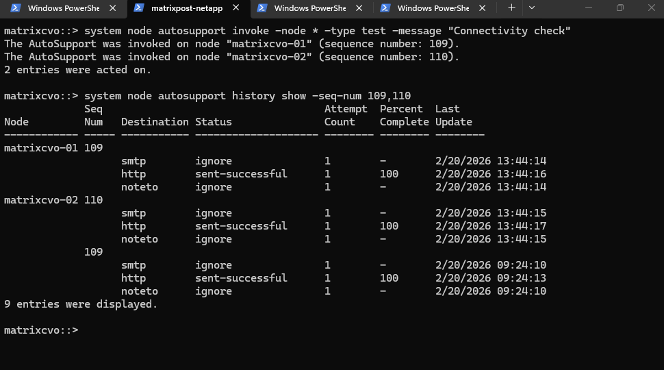 By checking the generated sequence numbers against the history log, you can verify in real-time that the “sent-successful” status is achieved. This proactive test ensures that the cluster is not just administratively “enabled” but is actively capable of reaching NetApp’s backend for critical support events.