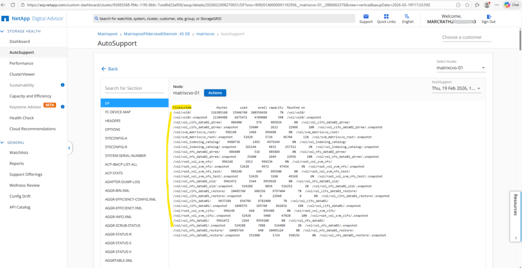When you drill down into a specific AutoSupport entry, you are essentially looking at the raw diagnostic data that NetApp Support would use to troubleshoot our cluster.