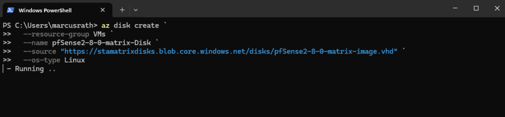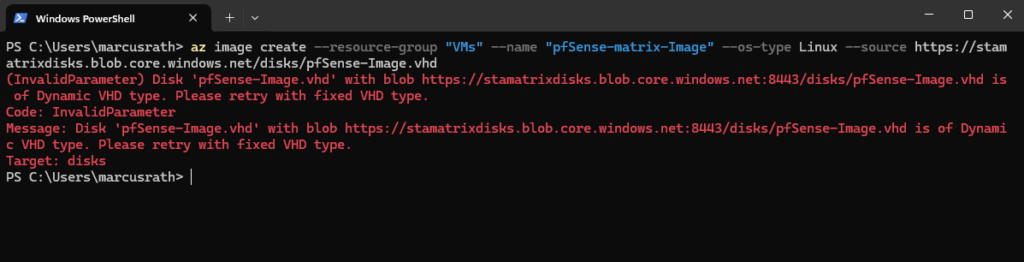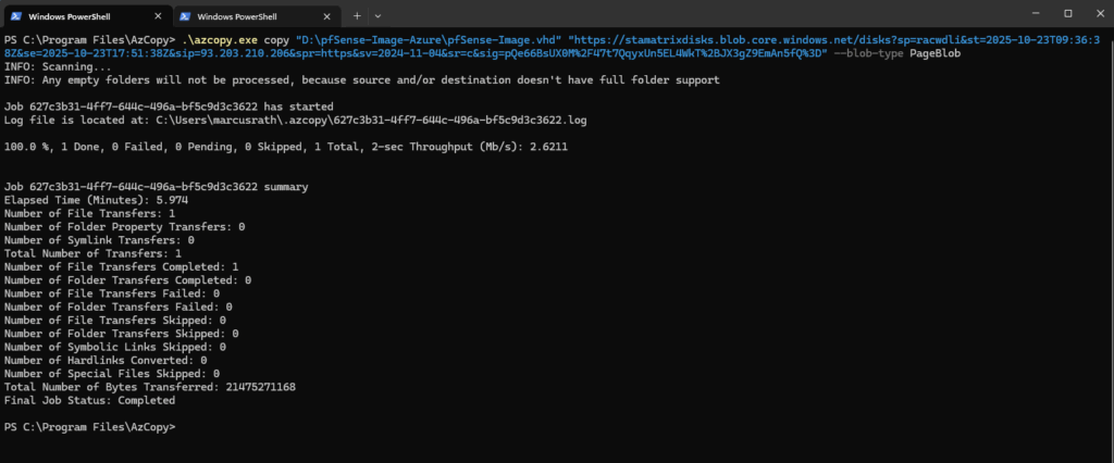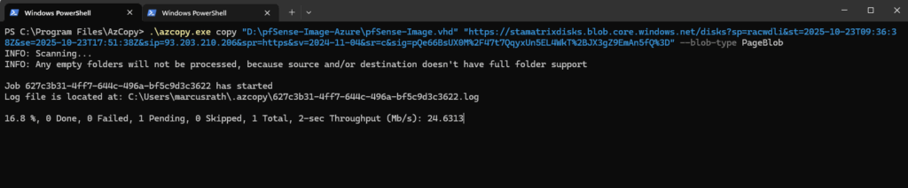 2025/10/25 14:31:03 Job-Command copy C:\Users\MarcusRath\Downloads\pfSense\pfSense2-8-0-image.vhd https://stamatrixdisks.blob.core.windows.net/disks?.......--blob-type PageBlob