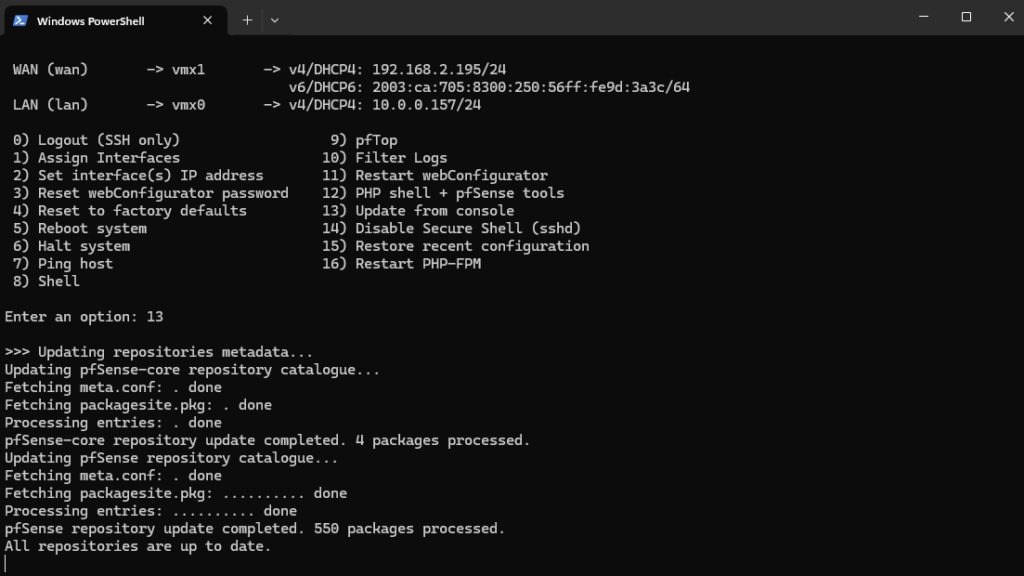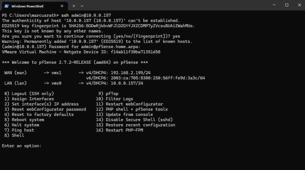 By the way, when preparing the pfSense image for Google Cloud (GCP), as shown in my post here, we can simply shut it down right from the shell using the poweroff command, and it’s instantly ready for upload.