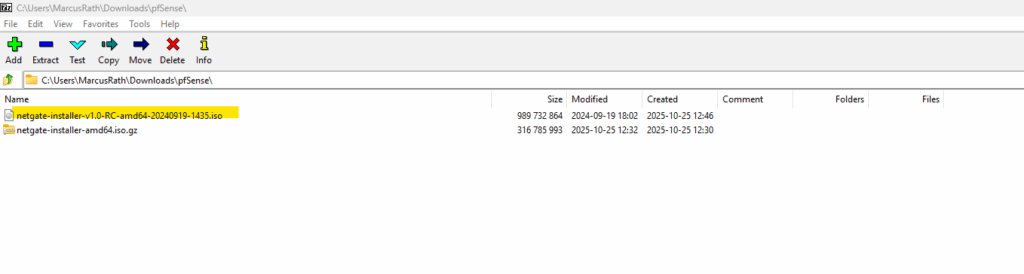 Netgate around 2023-2024 changed how pfSense images are distributed: instead of downloading a plain .iso file, installers now arrive compressed as .iso.gz archives.
