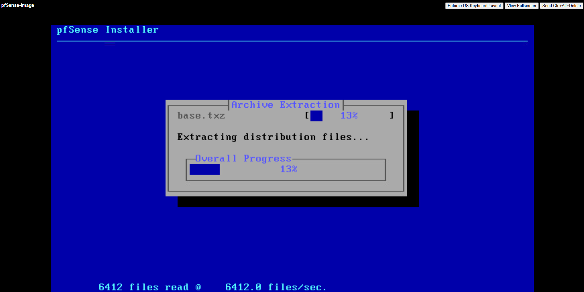 After the installation completes (usually in a few seconds) we need to reboot pfSense.
