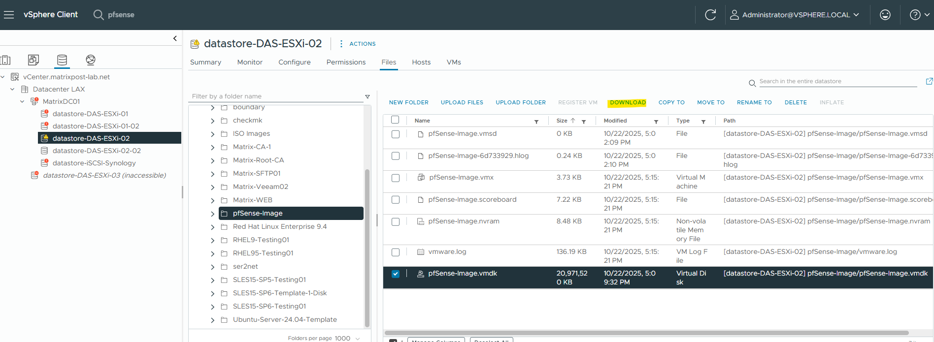I also want to reach the pfSense GUI directly from my on-prem vSphere lab over the site-to-site VPN, no jump host or extra VM needed (and money saved).