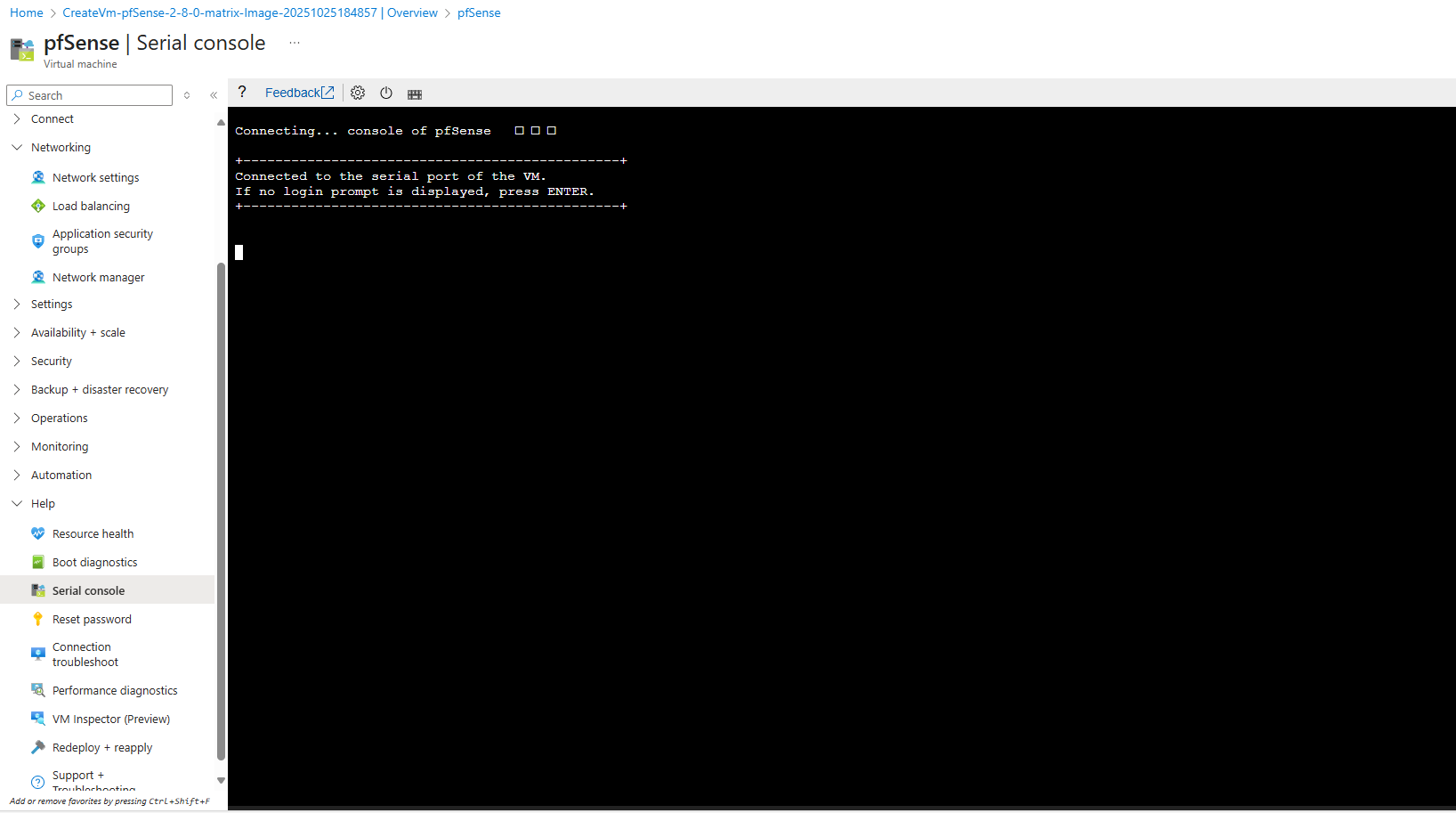 This makes the startup process much faster and avoids guest-agent related errors that occur when Azure tries to configure an unsupported OS like our pfSense appliance (FreeBSD 15 since 2.8.x).