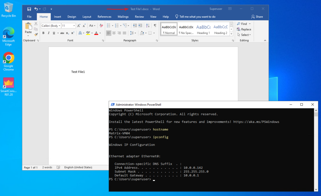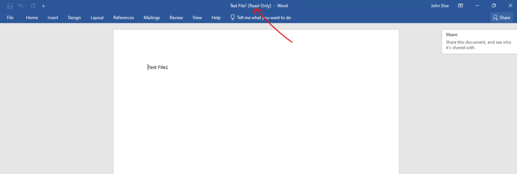 To demonstrate this behavior, I open the Word document “Test File1.docx” from the NetApp SMB share \\172.18.10.50\Folder1 on a Windows client with the IP address 10.0.0.142.