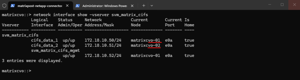 matrixcvo::> network interface show -vserver svm_matrix_cifs