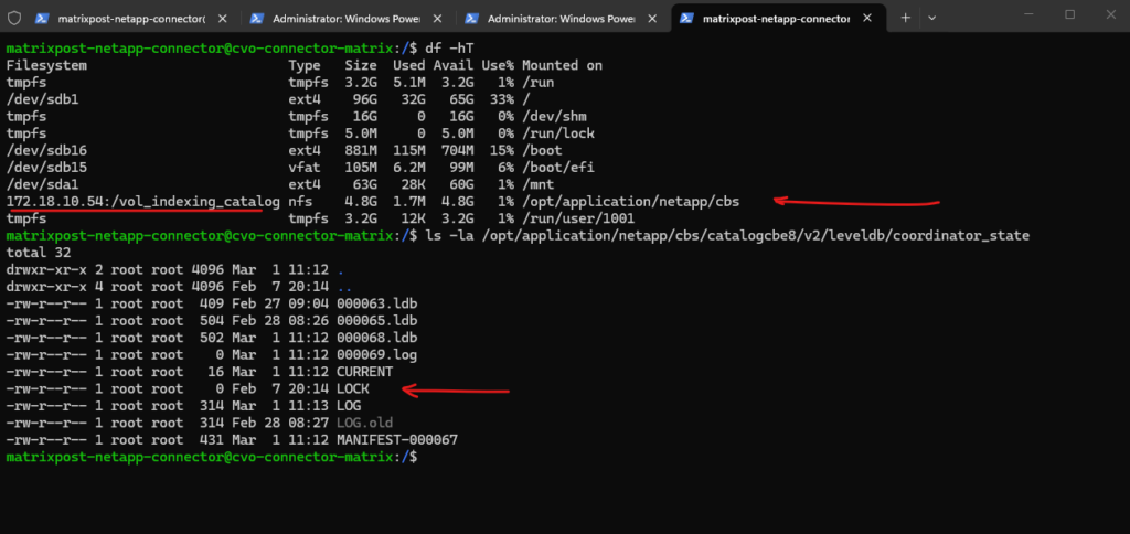 Specifically, this mount allows the Cloud Control Plane to index and browse individual files within your backup snapshots directly from the Azure Connector. By maintaining the LevelDB catalog on this NFS volume, CVO can quickly search for and present specific file versions for restore without needing to mount the entire backup archive first.