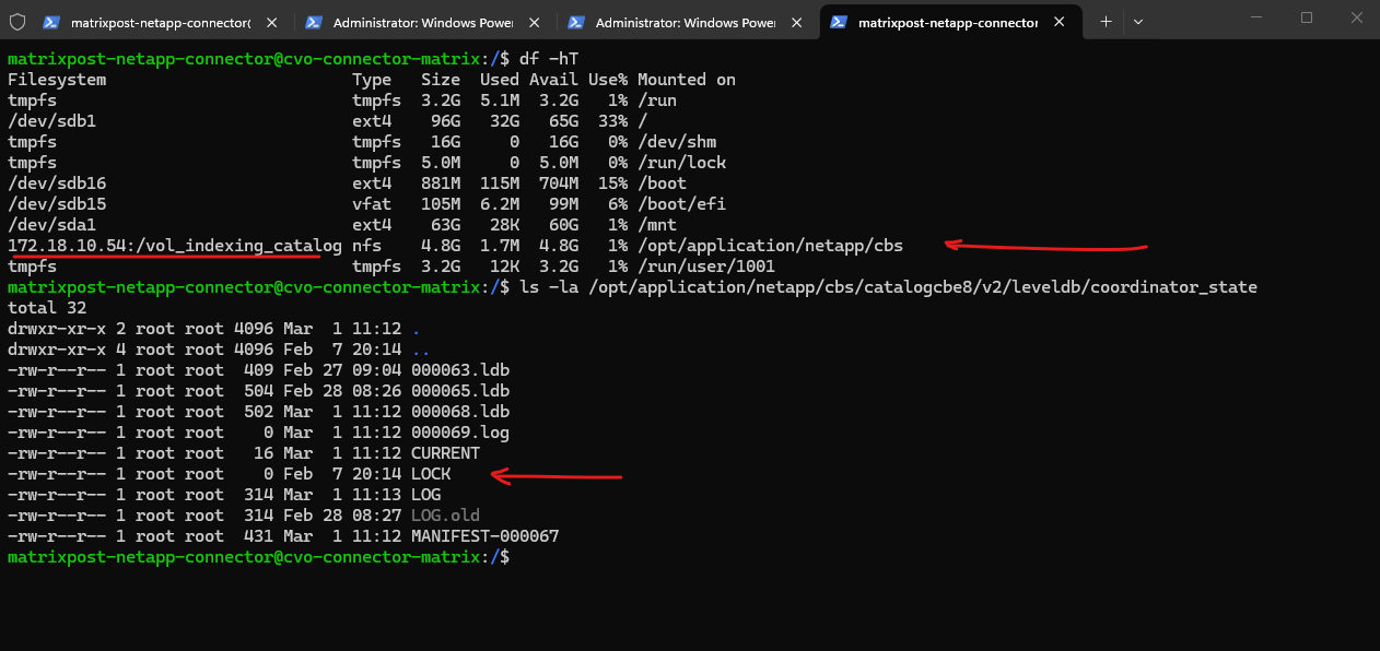 The lock showing below for the NFSv3 mounted volume is from my Azure CVO Connector as shown in my post here.