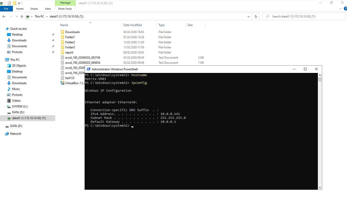 I will now also access the SMB share from a second Windows client, but without opening any files. This allows us to observe how ONTAP registers an active session and directory-level access without creating file-level locks.