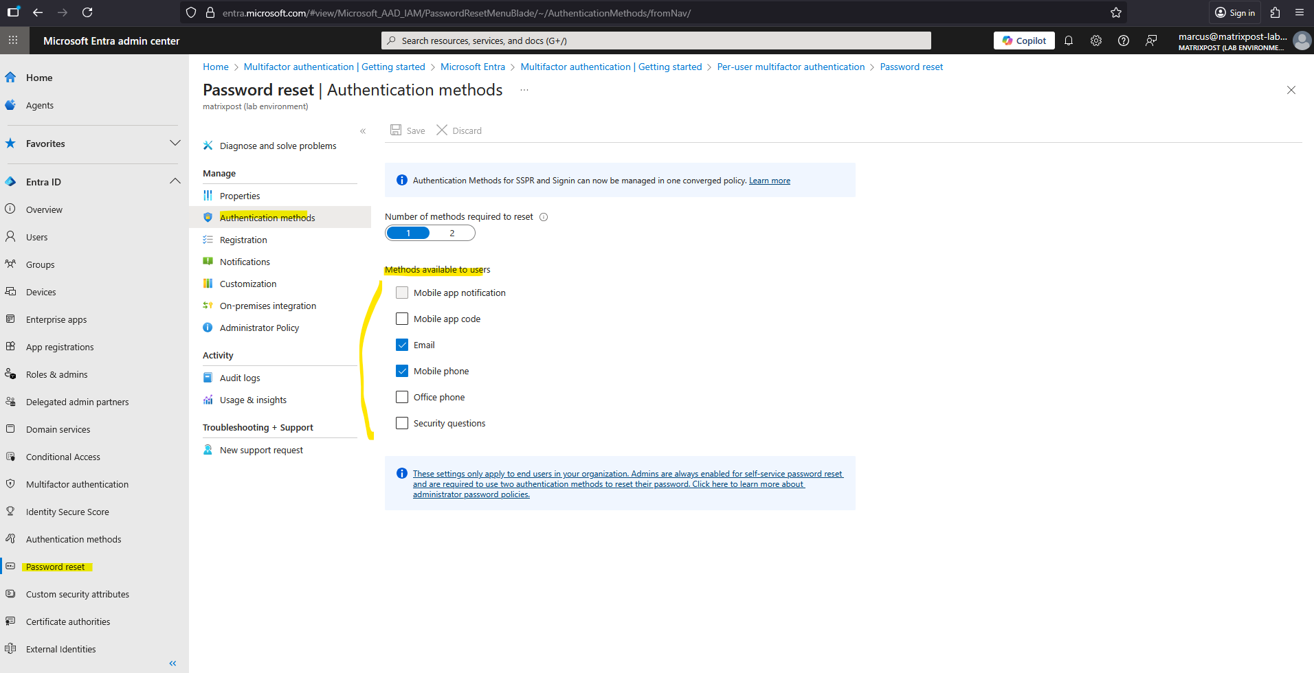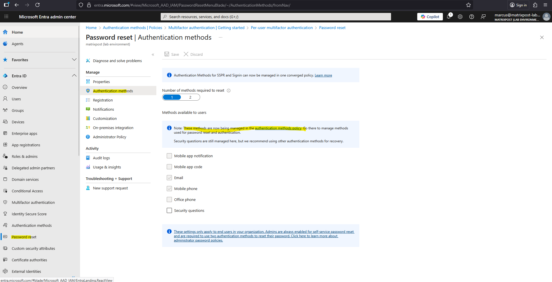 The same for the password reset authentication methods, which now also be managed by the authentication methods policy.