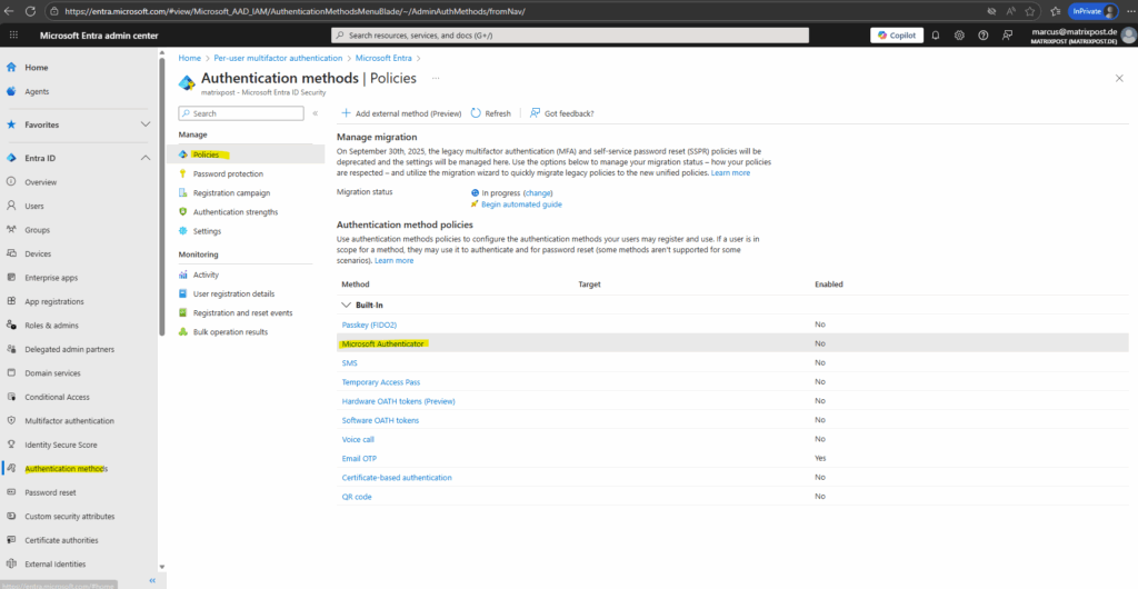 Starting September 30, 2025, Microsoft will retire the legacy per-user MFA and SSPR settings in Entra ID. From then on, all authentication methods are managed centrally through the new Unified Authentication Methods policy.