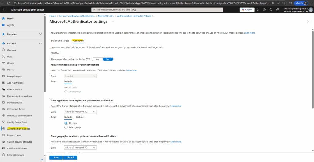 Below e.g. configure manual the Microsoft Authenticator (authentication method). Click on it.
