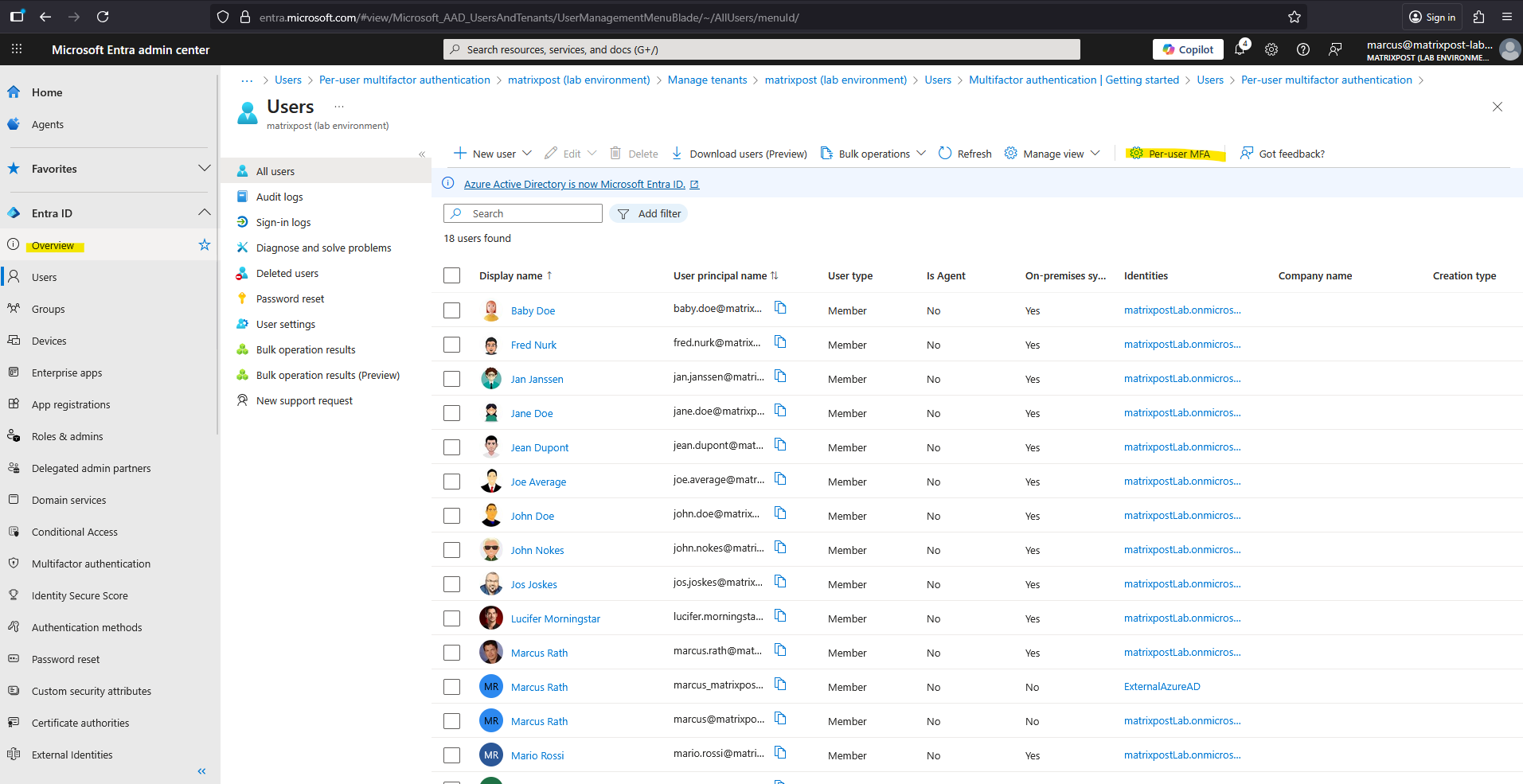 Go to Microsoft Entra Admin Center Entra ID > Overview > All users -> Per-user MFA.