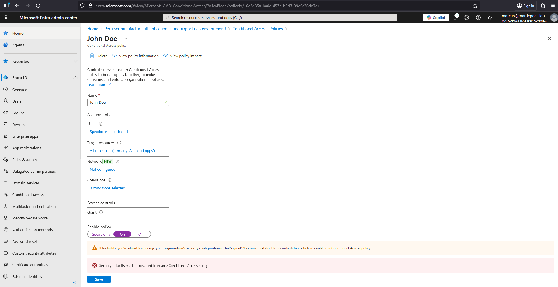 Security defaults must be disabled to enable Conditional Access policy