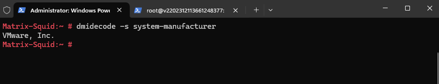 dmidecode -s system-manufacturer reads hardware information directly from the VM’s virtual BIOS and reveals the vendor string of the underlying hypervisor (e.g., VMware, Microsoft, QEMU). It provides highly accurate hypervisor identification and works even when simplified tools like systemd-detect-virt return generic results.