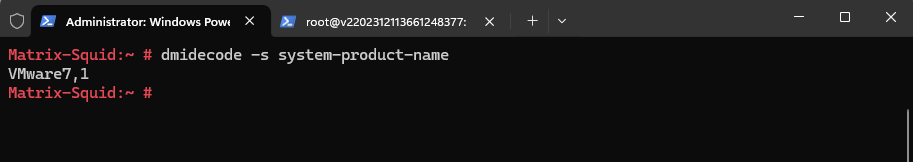 dmidecode -s system-product-name displays the virtual machine’s product identifier from its BIOS data, often showing more specific information about the hypervisor or virtualization stack (e.g., KVM/QEMU models, VMware product names, Hyper-V models). It’s useful for distinguishing similar platforms or confirming virtual hardware details inside a Linux guest.