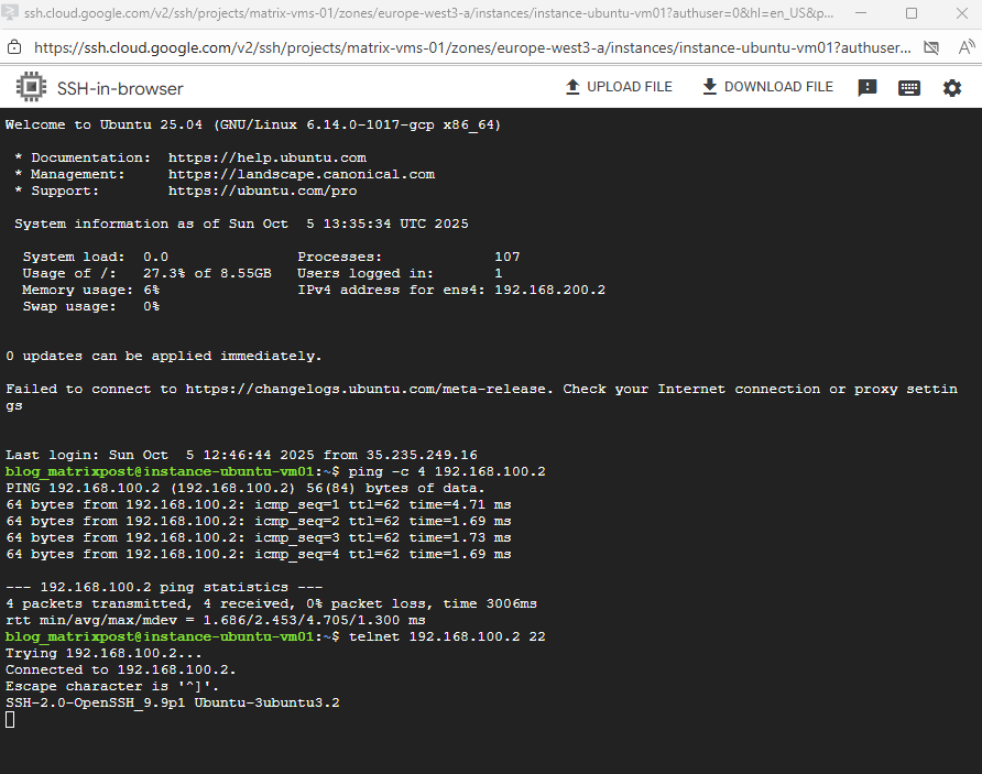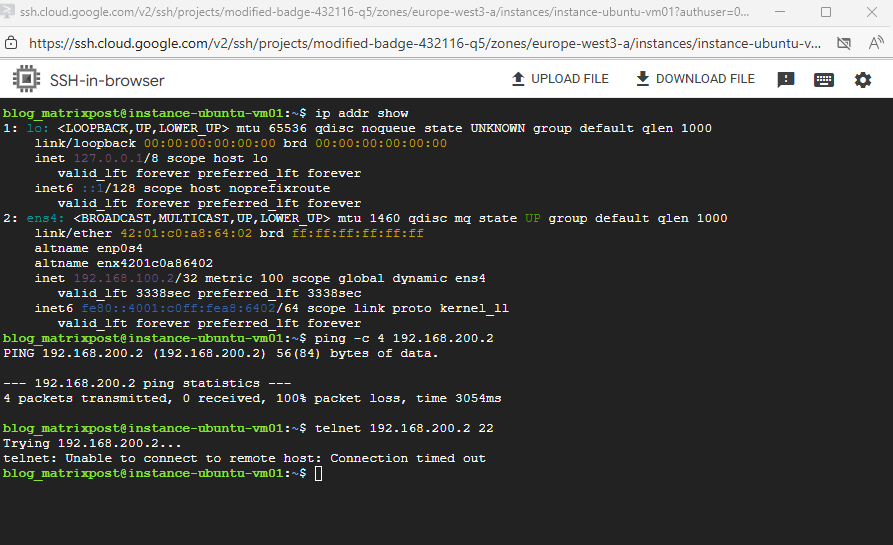 When configuring VPC peerings and VPC firewalls for testing and analyzing traffic flow, we also need to be sure that in the end not the local firewall from our VM instances will block the traffic.