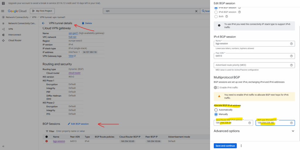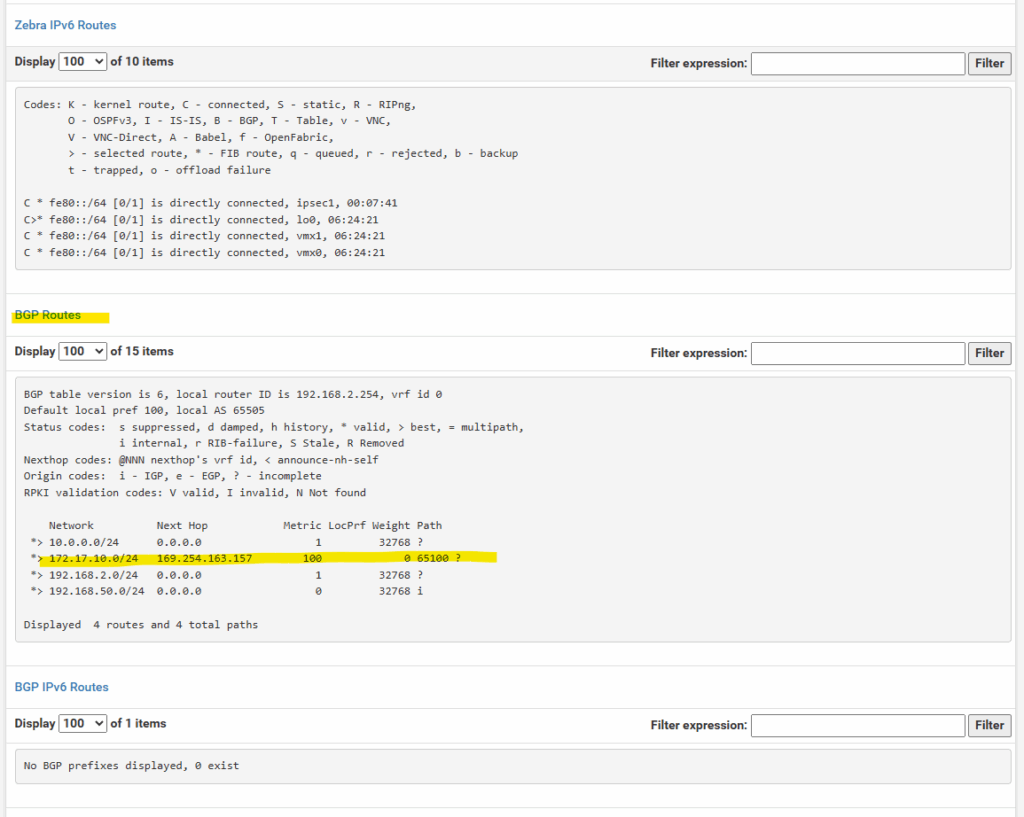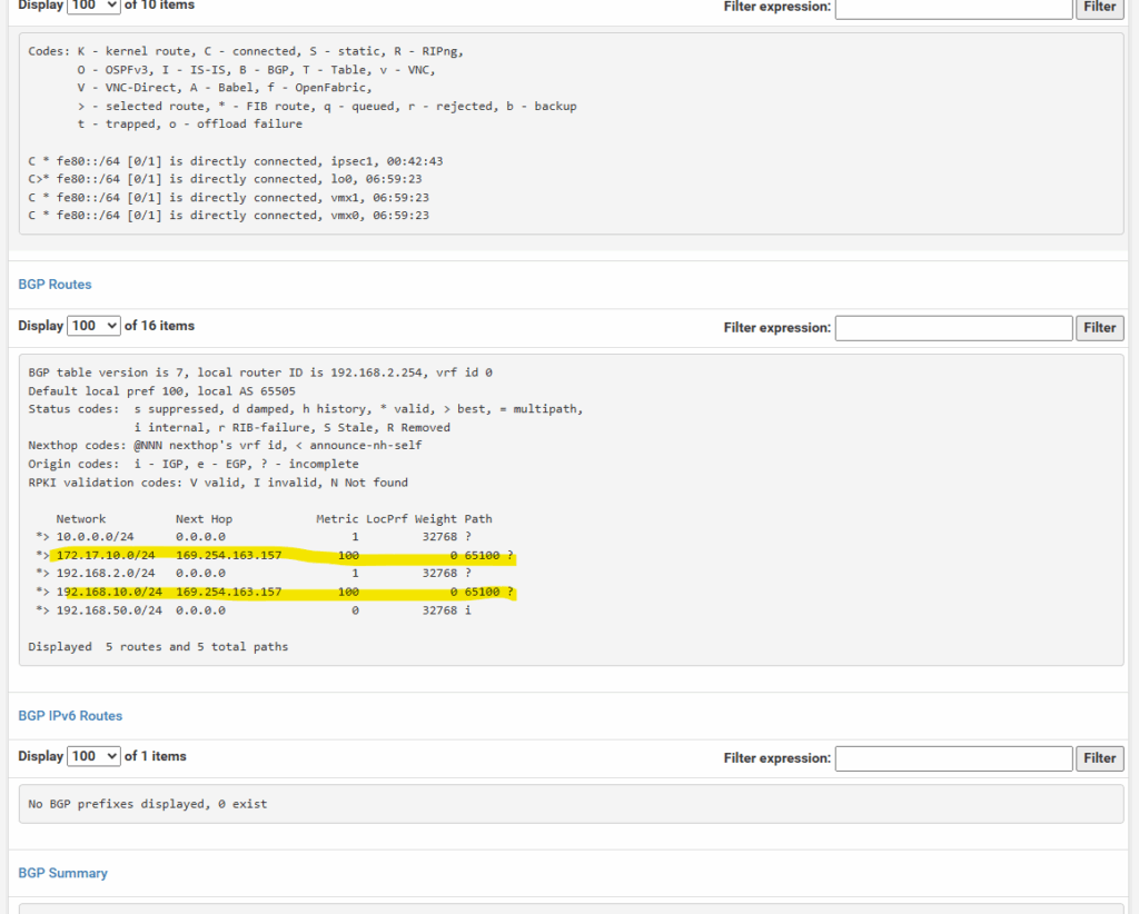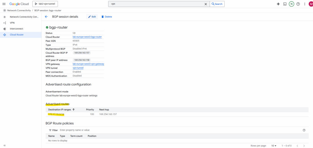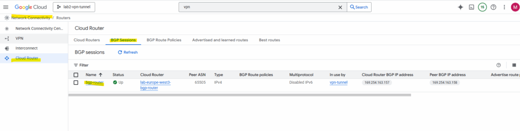 Below I can already see that BGP sessions already configured for the vpn tunnel.
