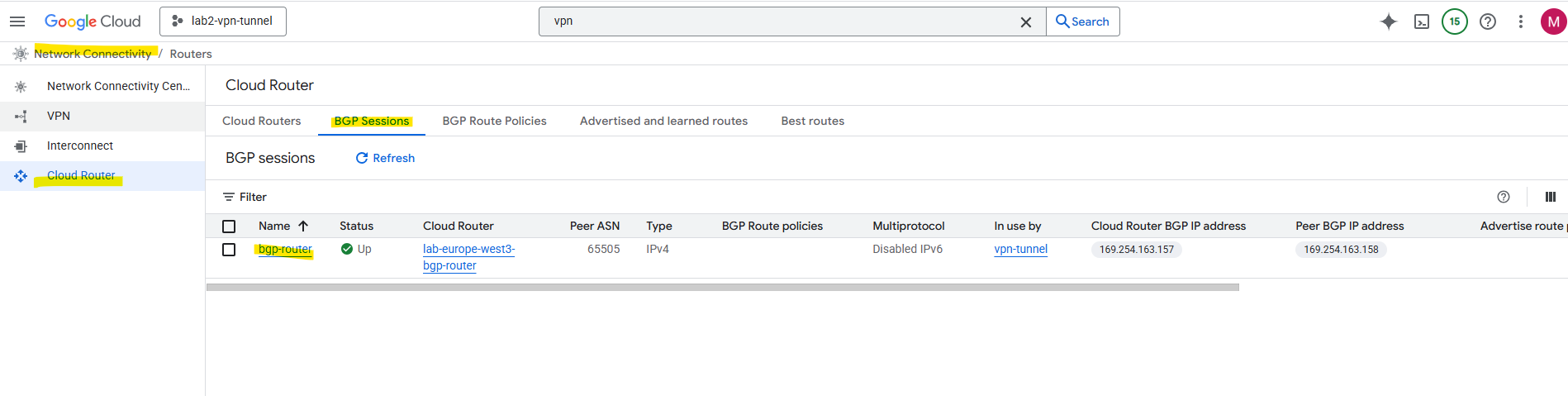 Below I can already see that BGP sessions already configured for the vpn tunnel.