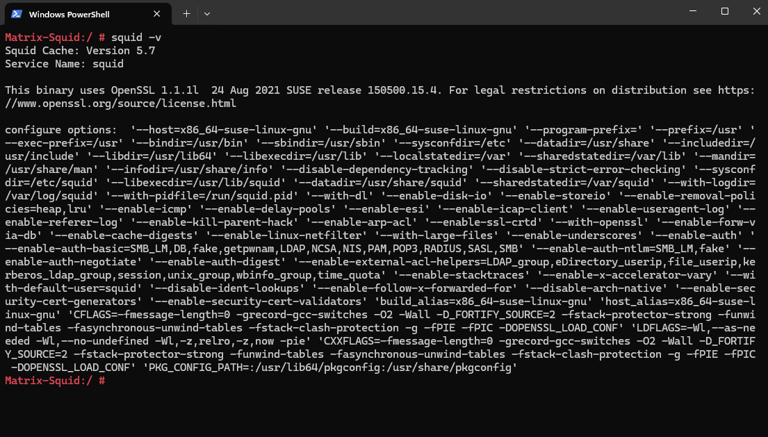 This will also print the configure options (flags) as shown below. These flags define Squid’s features and dependencies.