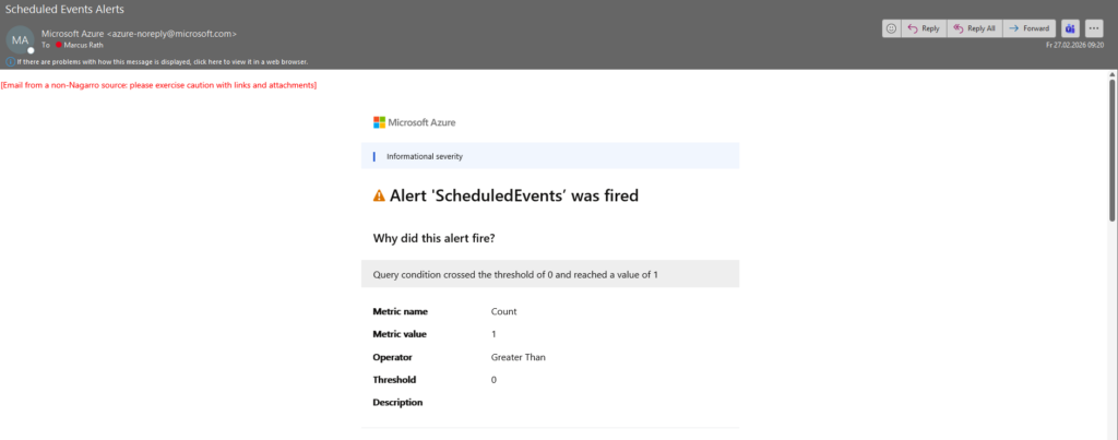 Then exceptionally hoping that Azure will soon schedule a new maintenance event for the host on which these virtual machines are running, to see if our service and alerting will also work for platform-initiated maintenance events.